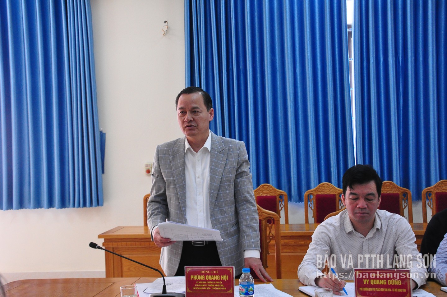 Đồng chí Phùng Quang Hội, Ủy viên Ban Thường vụ Tỉnh ủy, Bí thư Đảng ủy phường Đông Kinh, Ủy viên Ban Văn hóa – Xã hội HĐND tỉnh phát biểu tại buổi khảo sát