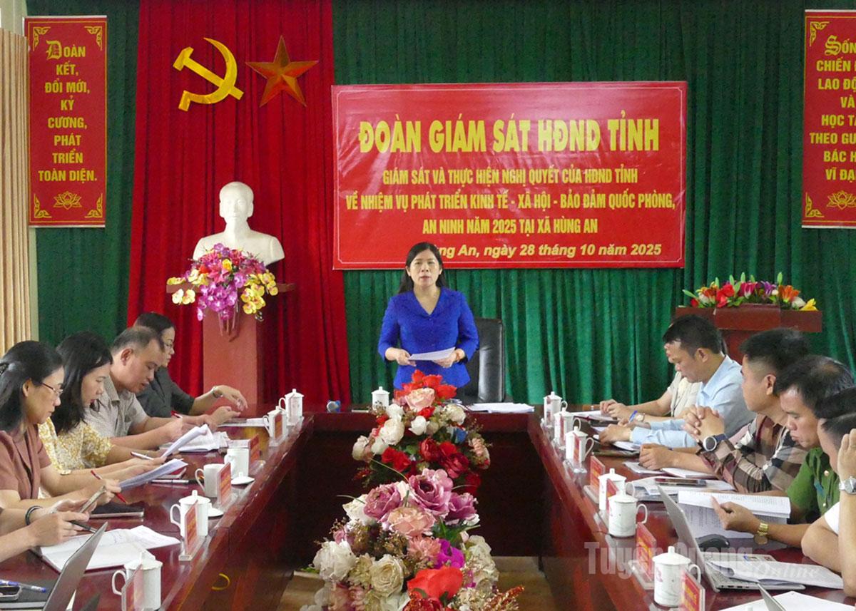 Qua kiểm tra, giám sát thực tế và tổng hợp ý kiến thảo luận tại buổi làm việc, Phó Chủ tịch HĐND tỉnh Lê Thị Thanh Trà ghi nhận và biểu dương những kết quả xã đã đạt được trong quá trình triển khai chính quyền địa phương hai cấp. Đồng chí đề nghị xã chủ động bám nắm thực hiện vượt và hoàn thành những chỉ tiêu đã đề ra trong năm 2025; giải quyết kịp thời, đầy đủ các chính sách theo Nghị quyết của HĐND tỉnh đã ban hành; triển khai hiệu quả các chính sách, chế độ cho người lao động.