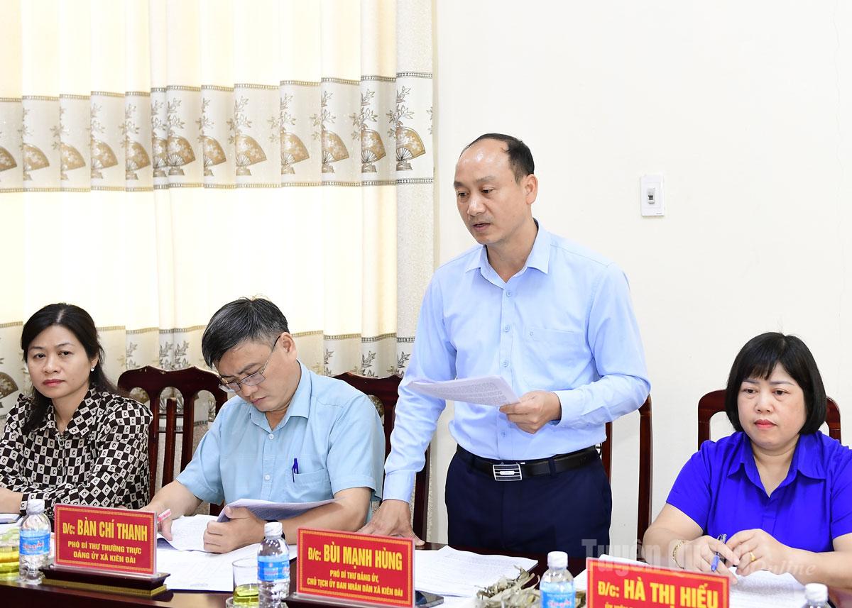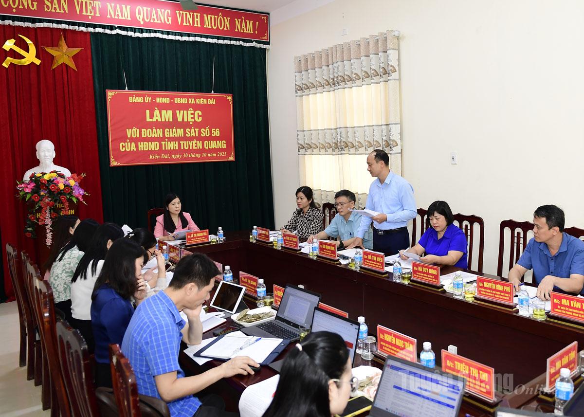Lãnh đạo xã Kiên Đài báo cáo kết quả thực hiện nhiệm vụ chính trị, phát triển kinh tế - xã hội trên địa bàn với Đoàn giám sát.