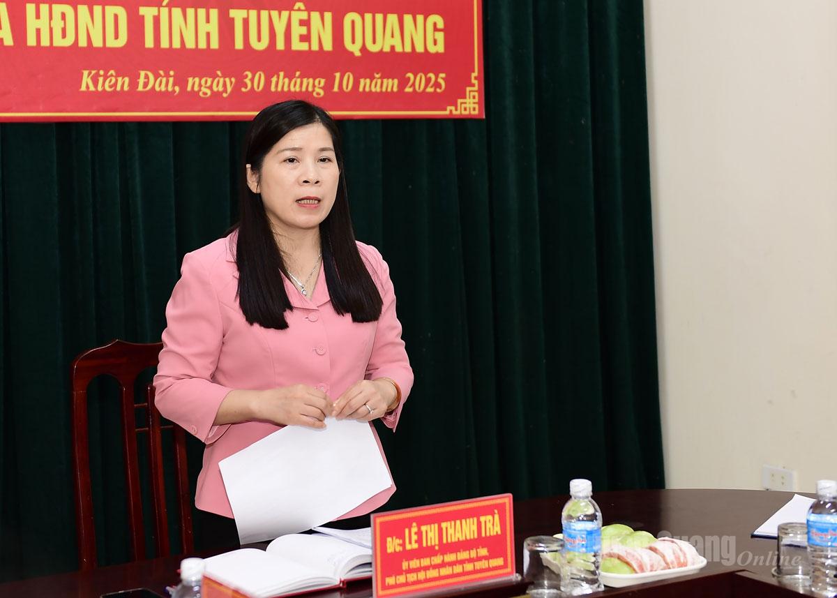 Đồng chí Lê Thị Thanh Trà, Ủy viên BCH Đảng bộ tỉnh, Phó Chủ tịch HĐND tỉnh kết luận buổi làm việc.