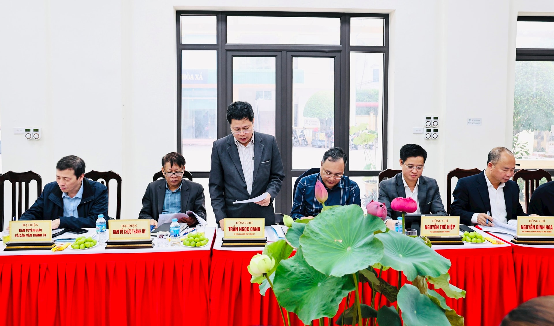 Báo cáo với Đoàn giám sát, Bí thư Đảng ủy, Chủ tịch HĐND xã Nguyễn Văn Định cho biết, thực hiện mô hình chính quyền địa phương hai cấp, từ ngày 1-7 đến nay, Đảng ủy, HĐND, UBND, Ủy ban MTTQ Việt Nam xã Hòa Xá đã tập trung vận hành ổn định, đạt một số kết quả tích cực.