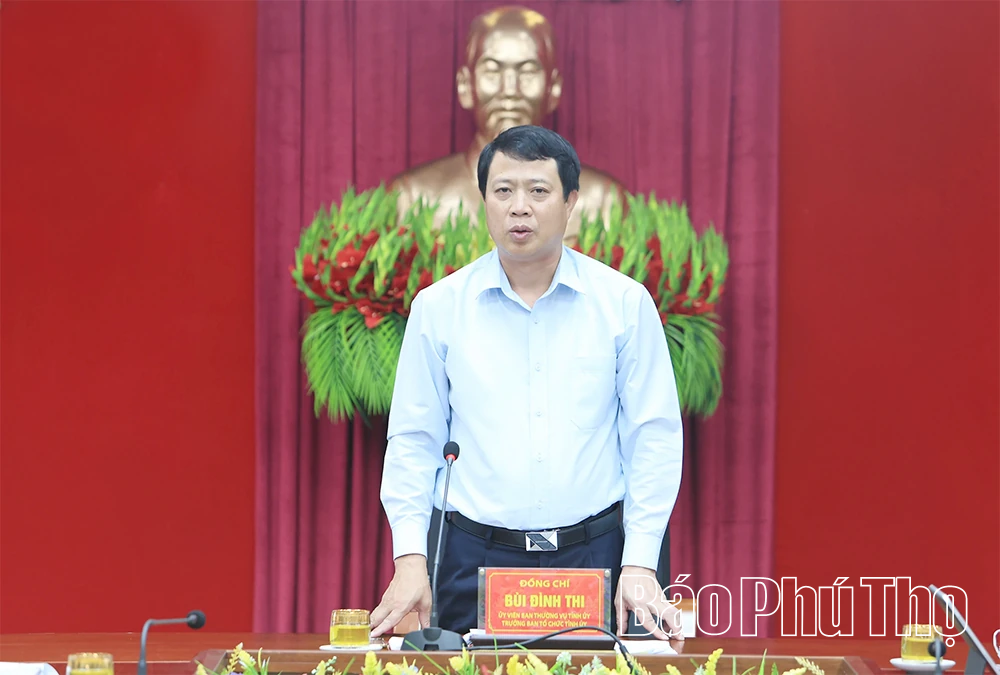 Đồng chí Trưởng Ban Tổ chức Tỉnh ủy Bùi Đình Thi phát biểu quán triệt triển khai một số nhiệm vụ trọng tâm.