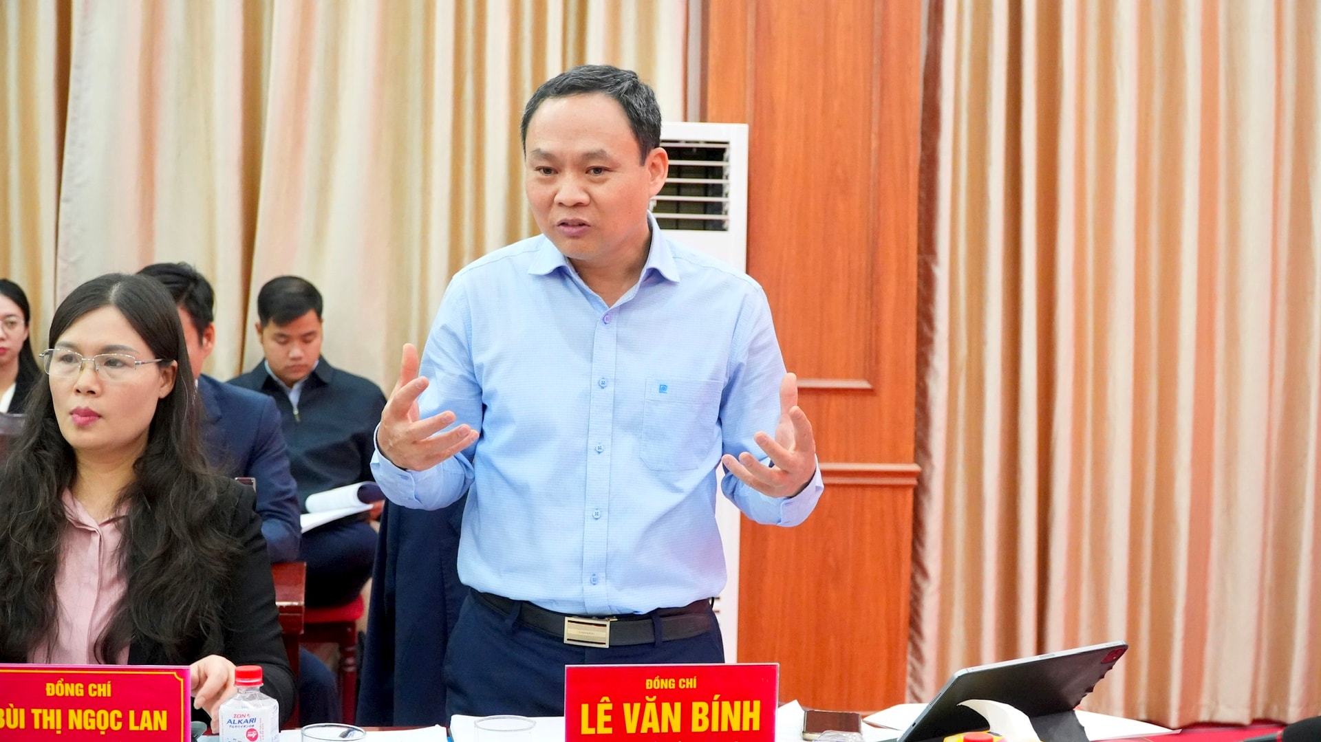 Bí thư Đảng ủy xã Phượng Dực Lê Văn Bính phát biểu tại hội nghị. Ảnh: Sơn Tùng