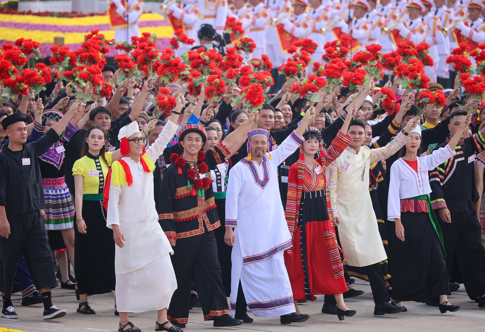 Khối đại diện 54 dân tộc Việt Nam diễu hành tại lễ kỷ niệm 80 năm Quốc khánh. Ảnh: Nhật Bắc
