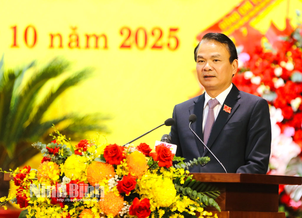 Trước hết, cho phép tôi thay mặt Ban Chấp hành Đảng bộ tỉnh trân trọng cảm ơn Bộ Chính trị, Ban Bí thư đã tin tưởng quyết định chúng tôi tham gia Ban Chấp hành, Ban Thường vụ, các chức danh lãnh đạo chủ chốt và cá nhân tôi được chỉ định Bí thư Tỉnh ủy Ninh Bình nhiệm kỳ 2025 - 2030. Đây là niềm vinh dự rất lớn, đồng thời cũng là trách nhiệm hết sức nặng nề mà Trung ương và Nhân dân trong tỉnh giao phó. Chúng tôi ý thức sâu sắc rằng sự tin tưởng của Bộ Chính trị, Ban Bí thư cũng chính là sự kỳ vọng của Đảng, Nhà nước và Nhân dân, và cũng chính là sứ mệnh của Ban Chấp hành Đảng bộ tỉnh.