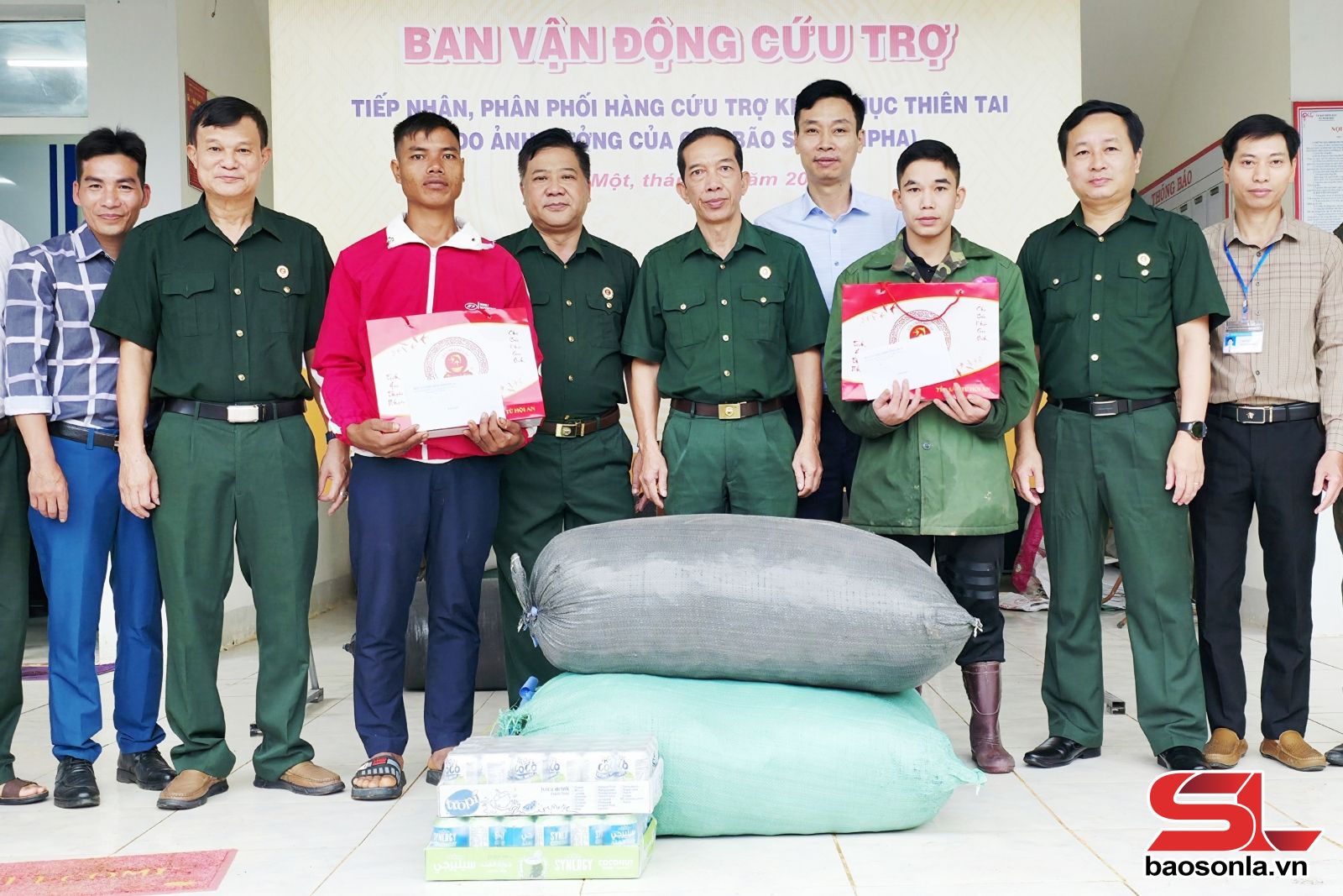 Hội CCB khối 487 tặng quà cho hội viên CCB xã Huổi Một bị ảnh hưởng do mưa lũ.