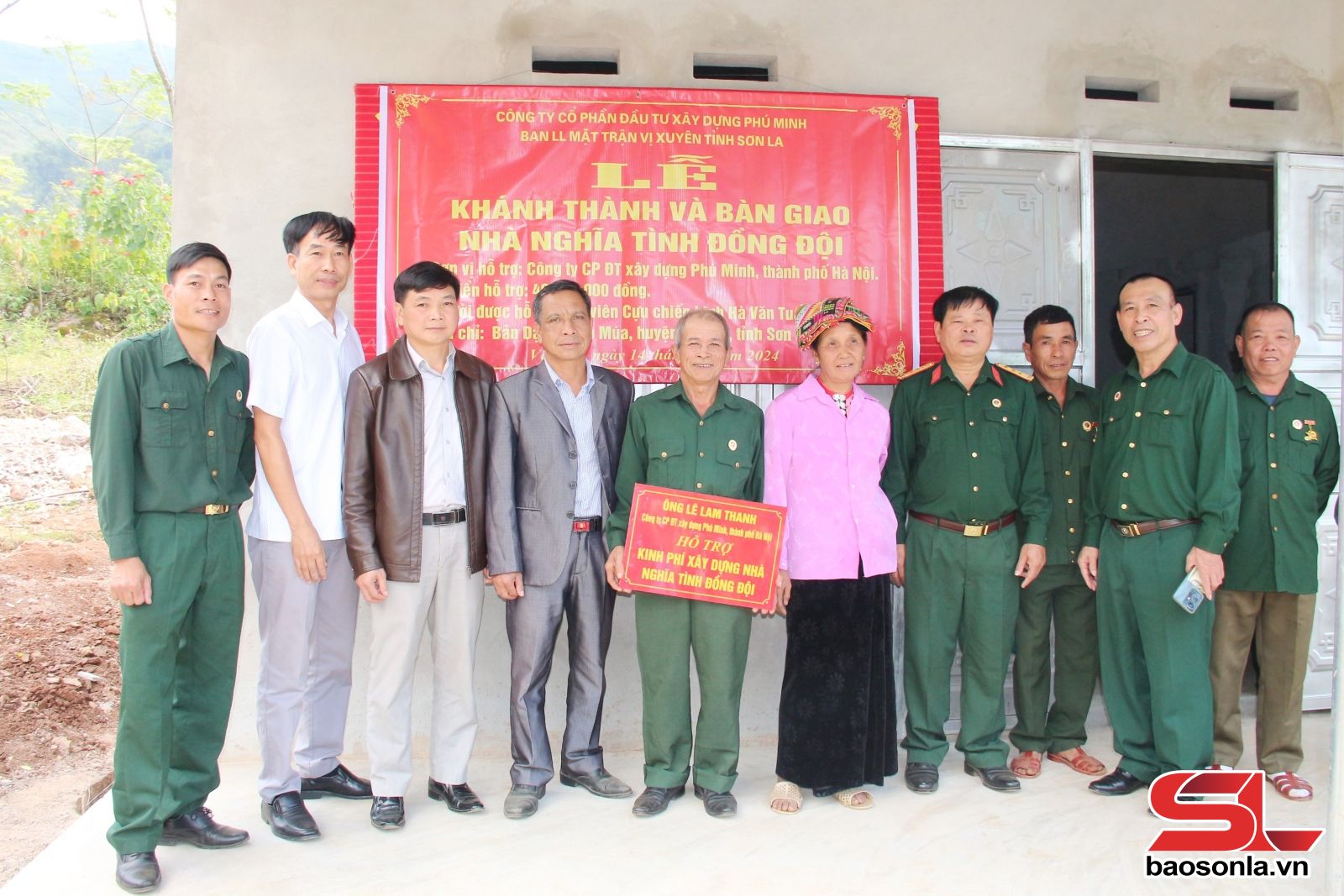 Hội CCB tỉnh và đơn vị tài trợ trao nhà “Nghĩa tình đồng đội” cho hội viên CCB nghèo xã Tô Múa. Ảnh: PV