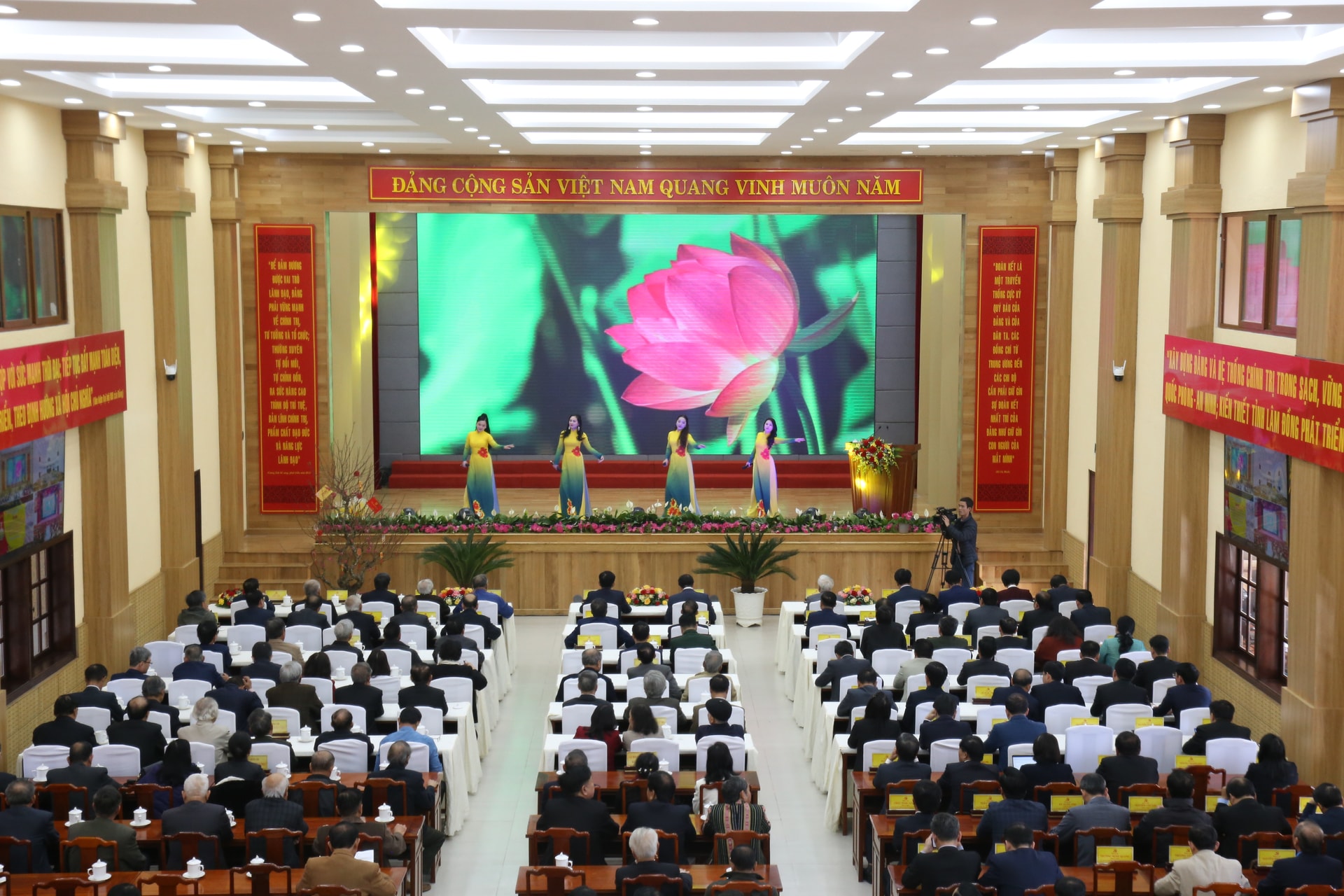 Trong niềm vui xuân mới, đồng chí Bí thư Tỉnh ủy kính chúc các đồng chí lãnh đạo, các đồng chí nguyên lãnh đạo tỉnh qua các thời kỳ, quý vị đại biểu cùng toàn thể đồng bào, đồng chí một năm mới Sức khỏe - Hạnh phúc - Vững tin và Thắng lợi.