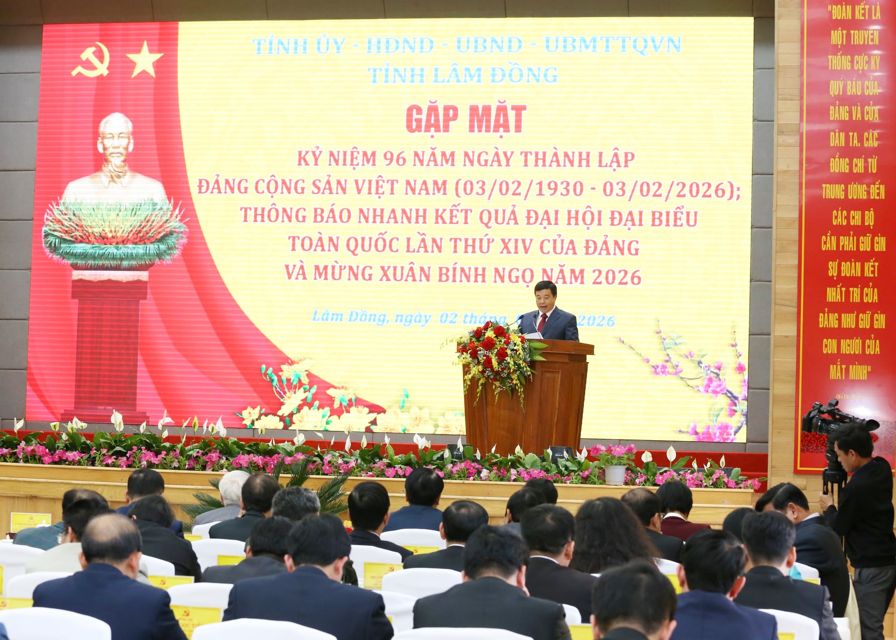 Phát biểu tại chương trình, đồng chí Y Thanh Hà Niê Kđăm, Bí thư Tỉnh ủy Lâm Đồng khẳng định: Đây là buổi gặp mặt có ý nghĩa sâu sắc, không chỉ để ôn lại chặng đường 96 năm vẻ vang của Đảng Cộng sản Việt Nam quang vinh, mà còn để chào mừng thành công rất tốt đẹp của Đại hội đại biểu toàn quốc lần thứ XIV - một dấu mốc xoay chuyển vận mệnh dân tộc.