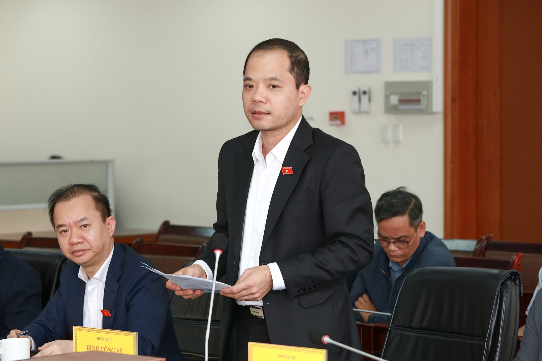 Đồng chí Đinh Công Sỹ, Phó Chủ nhiệm Ủy ban Văn hóa và Xã hội của Quốc hội phát biểu tại buổi làm việc