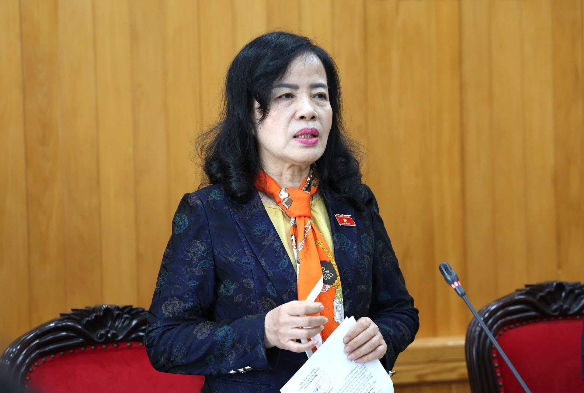 Đồng chí Trịnh Thị Tú Anh, Đại biểu chuyên trách Đoàn ĐBQH tỉnh Lâm Đồng phát biểu tại buổi làm việc