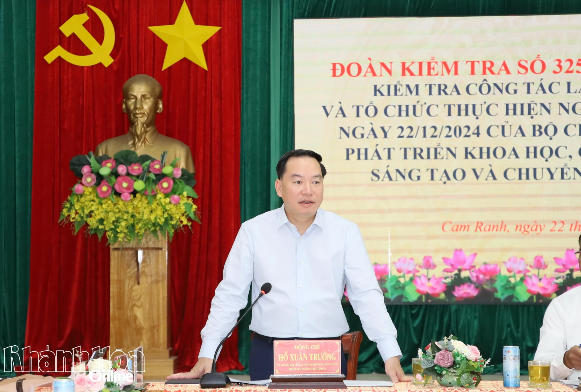 Phát biểu tại buổi kiểm tra, đồng chí Hồ Xuân Trường đề nghị Ban Thường vụ Đảng ủy phường Cam Ranh tiếp thu tối đa các ý kiến của thành viên đoàn kiểm tra, hoàn thiện báo cáo; đồng thời rà soát lại kế hoạch công tác năm 2026 của Ban Chỉ đạo thực hiện Nghị quyết số 57 phường. Trong đó, cần bám sát các văn bản chỉ đạo, hướng dẫn thực hiện của Ban Chỉ đạo Trung ương và tỉnh; khắc phục ngay những hạn chế, tồn tại, tập trung hoàn thành các nhiệm vụ về khoa học, công nghệ năm 2026; đặc biệt lưu ý công tác tổ chức thực hiện các nhiệm vụ khoa học, công nghệ, chuyển đổi số phải phân công rõ, cụ thể trách nhiệm cho cơ quan, cá nhân, đảm bảo thời gian, tiến độ hoàn thành, bố trí nguồn lực thực hiện, rõ sản phẩm, gắn với trách nhiệm của cấp ủy và người đứng đầu. Bên cạnh đó, chủ động lãnh đạo, chỉ đạo, kiểm tra, giám sát, đôn đốc việc thực hiện các chủ trương, định hướng và các giải pháp đột phá phát triển khoa học, công nghệ, đổi mới sáng tạo và chuyển đổi số. Phó Bí thư Thường trực Tỉnh ủy Hồ Xuân Trường ghi nhận các ý kiến, kiến nghị của Ban Thường vụ Đảng ủy phường Cam Ranh, đề nghị đoàn kiểm tra tổng hợp đưa vào báo cáo, trình Ban Thường vụ Tỉnh ủy xem xét, tháo gỡ trong thời gian tới…