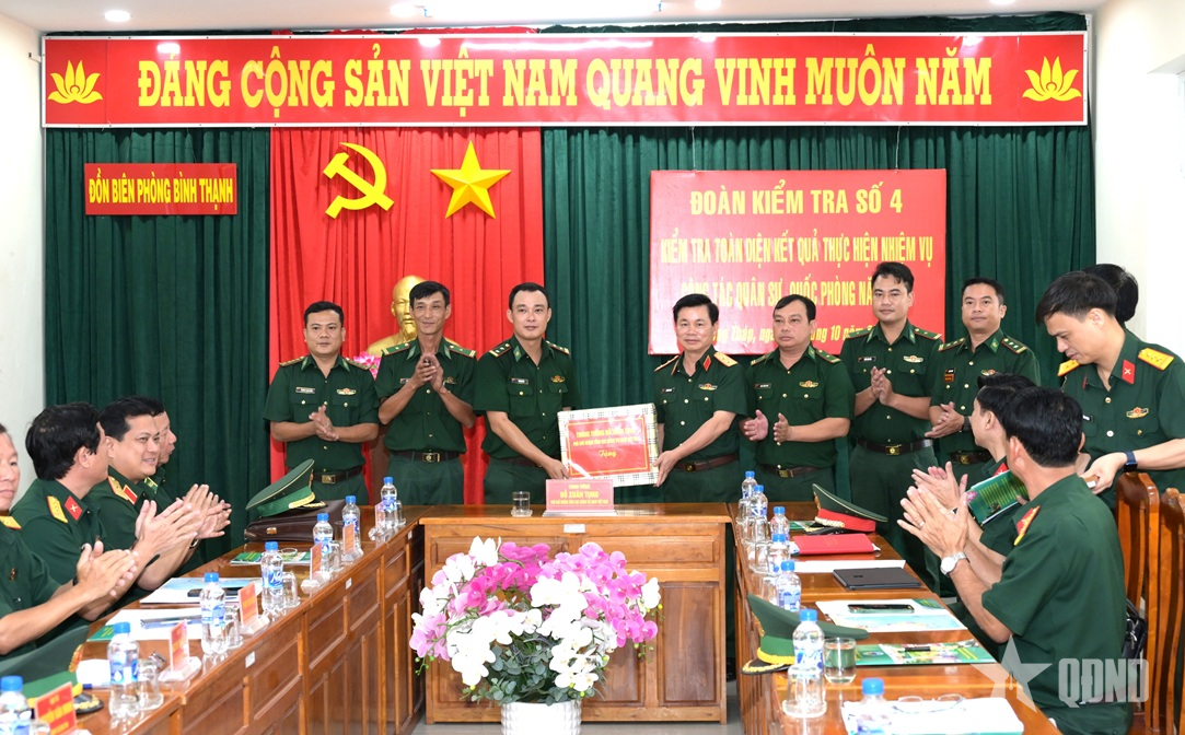 Kiểm tra và nghe báo cáo tại Đồn Biên phòng Bình Thạnh, Trung tướng Đỗ Xuân Tụng nhiệt liệt biểu dương trước những kết quả đạt được của cán bộ, chiến sĩ từ đầu năm 2025 đến nay. Đồng thời, đề nghị cán bộ, chiến sĩ tiếp tục thực hiện một số nhiệm vụ trọng tâm trong thời gian tới như: Tiếp tục phát huy truyền thống và kết quả đã đạt được; quán triệt, thực hiện nghiêm túc chỉ thị của các cấp về tổ chức các hoạt động quản lý, bảo vệ biên giới; chủ động nắm chắc tình hình, đối tượng địa bàn; phối hợp chặt chẽ với các lực lượng trong quản lý, bảo vệ vững chắc chủ quyền, kịp thời giải quyết các vụ việc liên quan đến an ninh biên giới; củng cố mối quan hệ giữa các lực lượng bảo vệ biên giới hai nước.