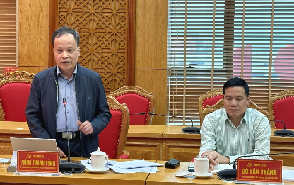 Đồng chí Nông Thanh Tùng, Ủy viên Ban Thường vụ Tỉnh ủy, Trưởng Ban Tuyên giáo và Dân vận Tỉnh ủy phát biểu tại buổi làm việc.