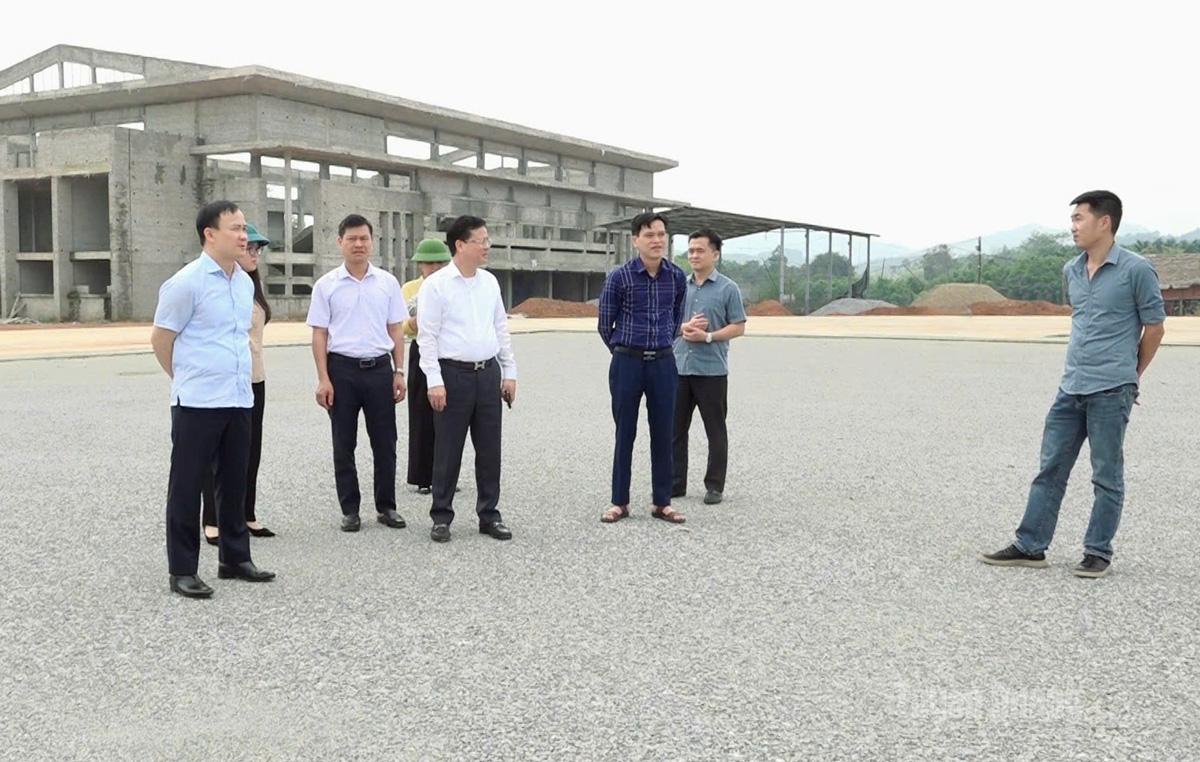 Đồng chí Trần Quang Minh, Ủy viên Ban Thường vụ Tỉnh ủy, Trưởng ban Tổ chức Tỉnh ủy kiểm tra tiến độ xây dựng Khu liên hợp thể thao tại thôn Minh Thành 1, xã Bắc Quang.