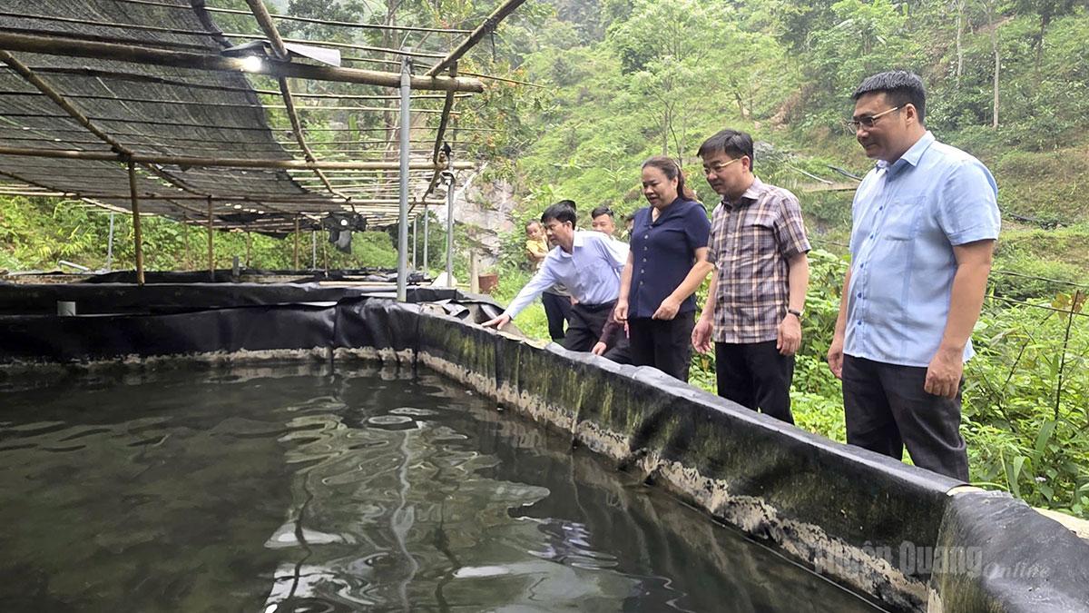Đoàn kiểm tra mô hình liên kết nuôi cá tầm thôn Bó Đướt, xã Thượng Sơn.