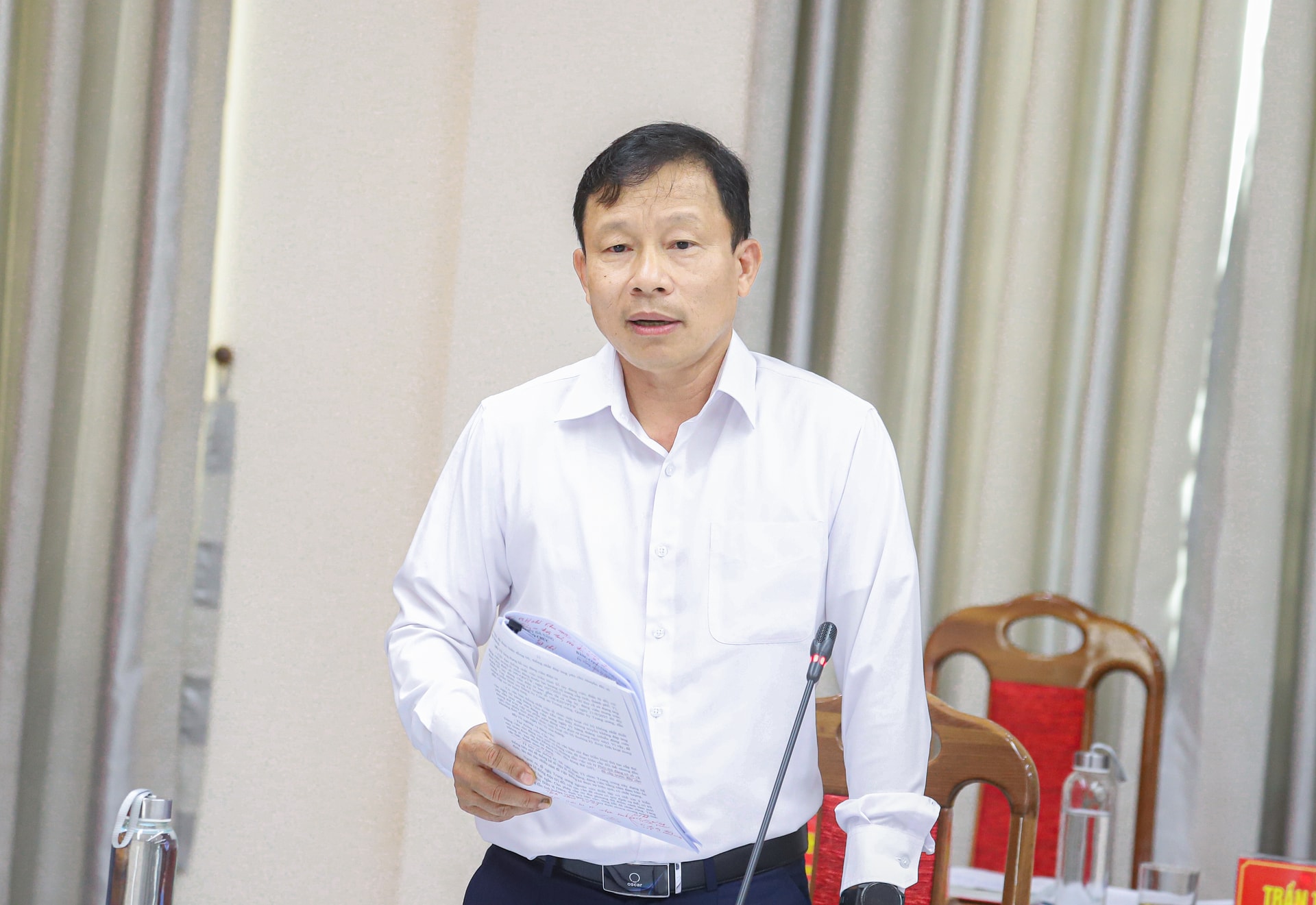 Trưởng ban Tổ chức Thành ủy Đoàn Duy Tân phát biểu tại buổi làm việc. Ảnh: NGỌC PHÚ