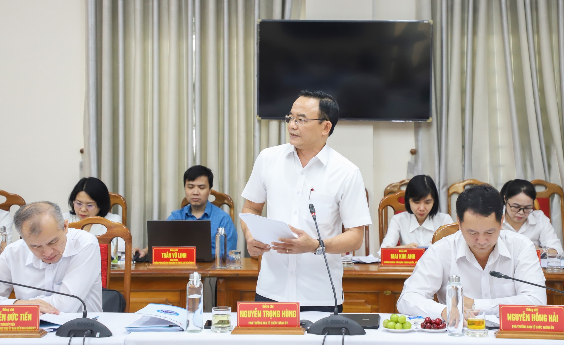 Phó trưởng Ban Tổ chức Thành ủy Nguyễn Trọng Hùng báo cáo tại buổi làm việc. Ảnh: NGỌC PHÚ