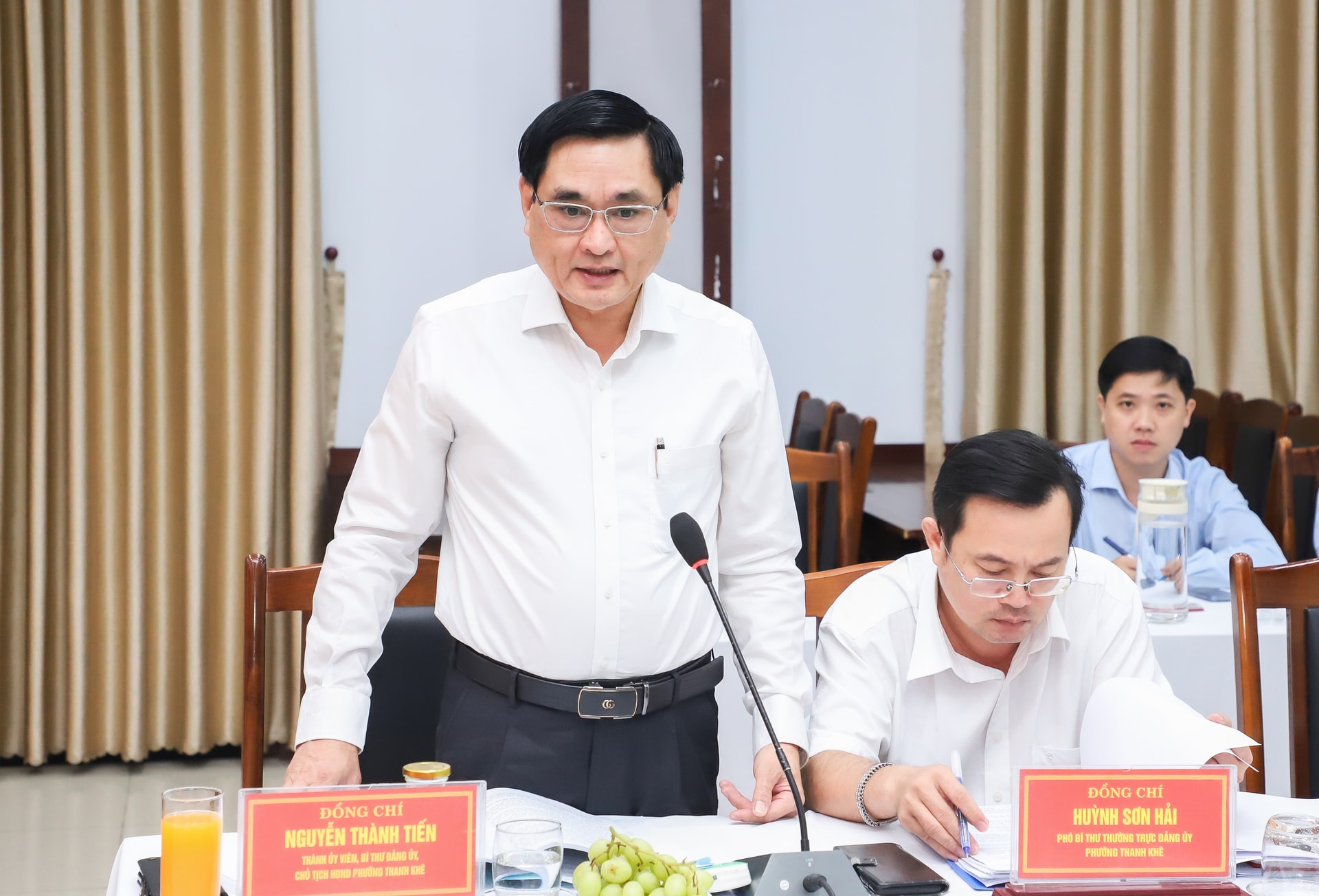 Bí thư Đảng ủy phường Thanh Khê Nguyễn Thành Tiến phát biểu tại buổi làm việc. Ảnh: NGỌC PHÚ