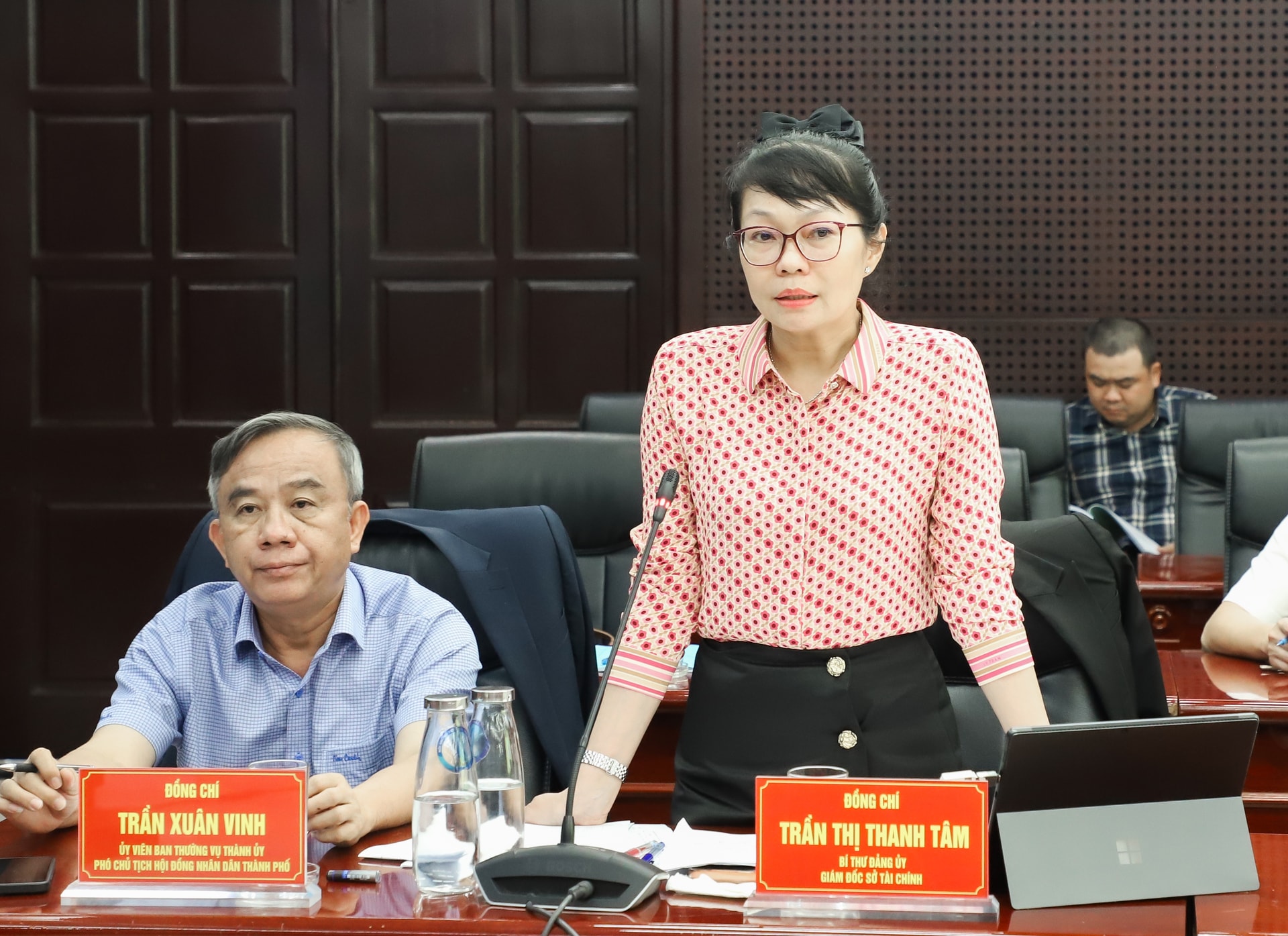Giám đốc Sở Tài chính Trần Thị Thanh Tâm phát biểu tại buổi làm việc. Ảnh: NGỌC PHÚ