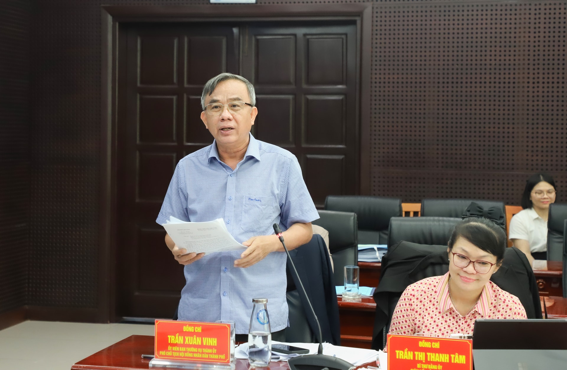 Phó Chủ tịch HĐND thành phố Trần Xuân Vinh phát biểu tại buổi làm việc. Ảnh: NGỌC PHÚ