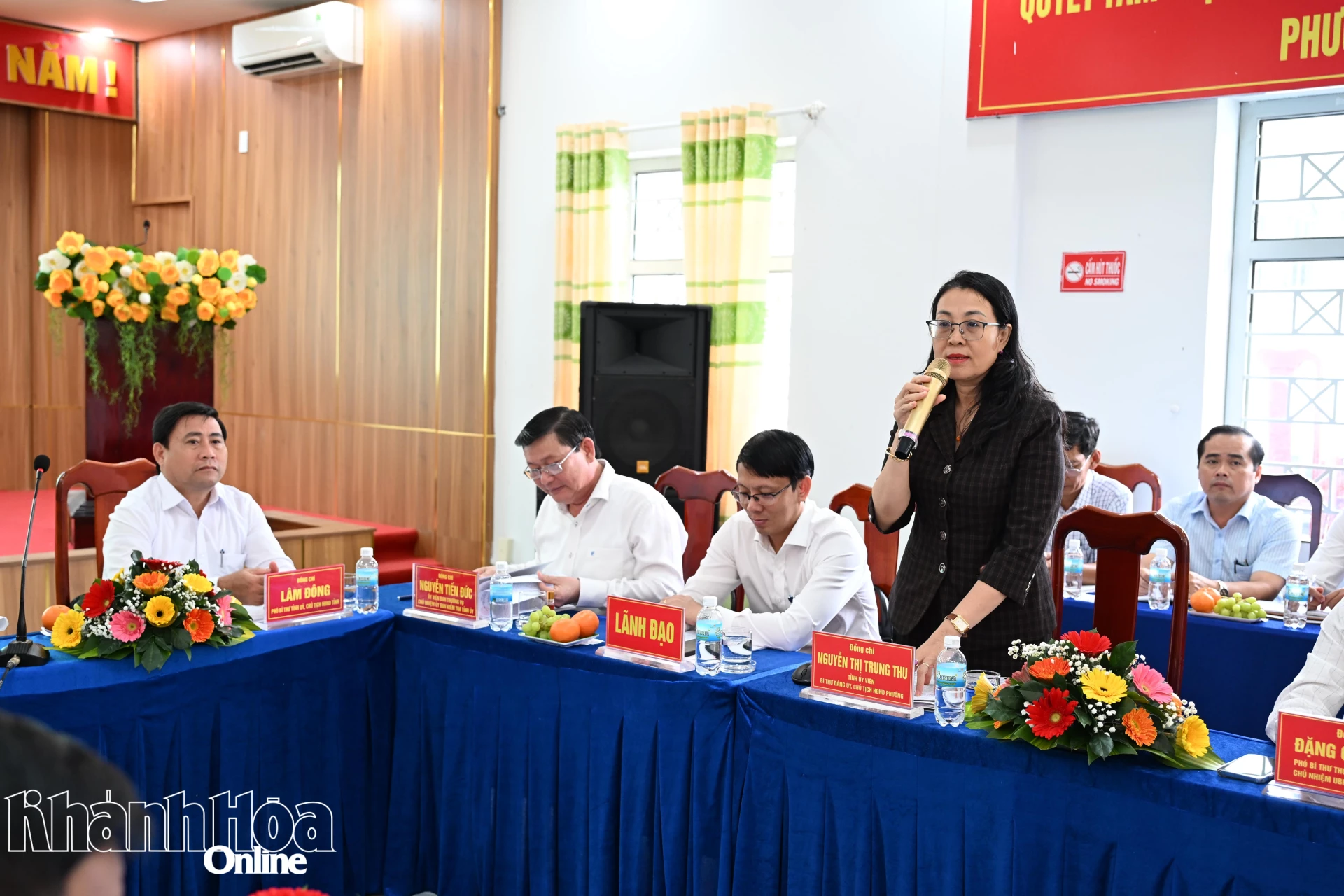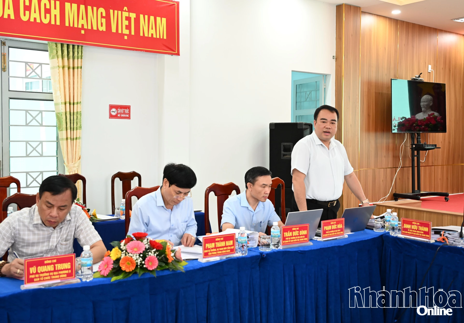Bí thư Đảng ủy, Chủ tịch HĐND phường Bắc Nha Trang Nguyễn Thị Trung Thu báo cáo với Đoàn Kiểm tra, giám sát số 25.