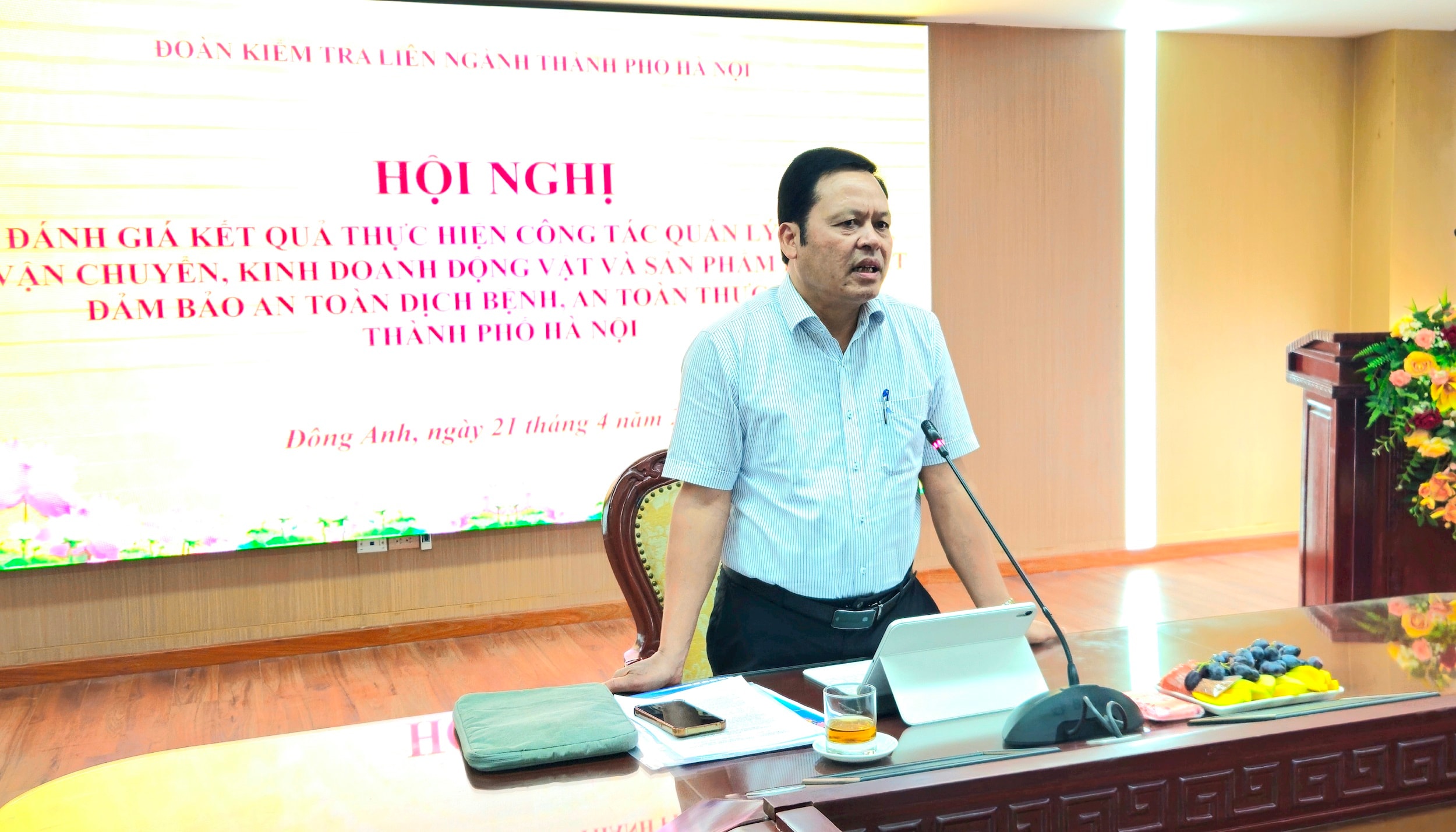 Phó Giám đốc Sở Nông nghiệp và Môi trường Hà Nội Tạ Văn Tường phát biểu. Ảnh: Dương Mai