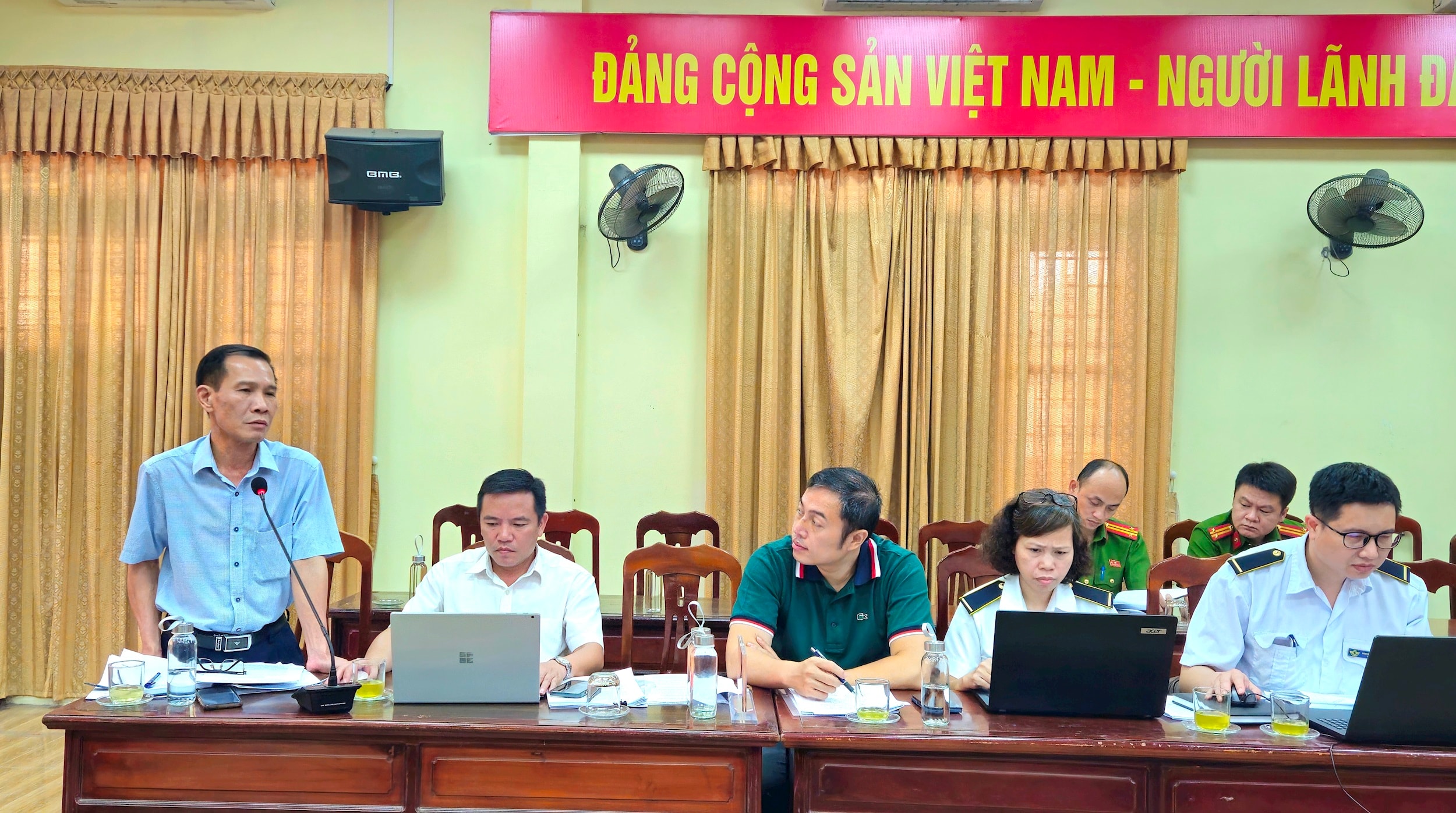 Đại diện UBND các xã báo cáo với Đoàn công tác về tình hình kinh doanh, vận chuyển động vật và sản phẩm động vật; số lượng chợ, số điểm kinh doanh; các biện pháp quản lý nguồn gốc sản phẩm động vật, công tác quản lý, kiểm soát và các giải pháp đã triển khai; các giải pháp, nhiệm vụ đang và sẽ triển khai; lộ trình, thời gian dự kiến chấm dứt giết mổ nhỏ lẻ và khó khăn, vướng mắc trong quá trình tổ chức thực hiện; những tồn tại, hạn chế trong công tác quản lý, kiểm soát và bảo đảm an toàn thực phẩm.