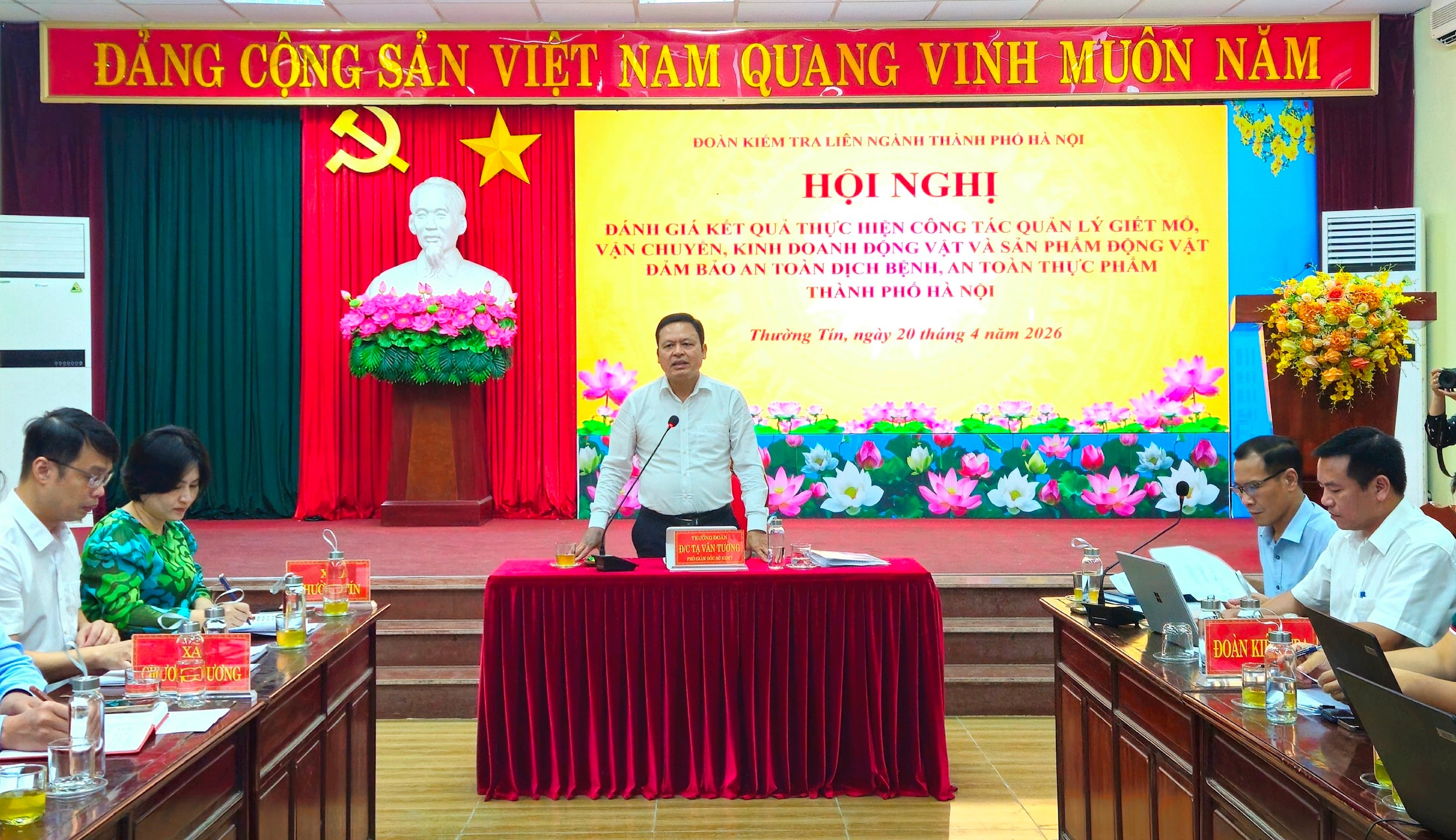 Phát biểu chỉ đạo tại hội nghị, Phó Giám đốc Sở Nông nghiệp và Môi trường Hà Nội Tạ Văn Tường - Trưởng đoàn Kiểm tra liên ngành thành phố đề nghị Chi cục Chăn nuôi, Thủy sản và Thú y Hà Nội rà soát, tổng hợp báo cáo, đề xuất của các xã về lộ trình chấm dứt hoạt động của các cơ sở giết mổ nhỏ lẻ, đề xuất quy hoạch, đưa vào sử dụng khu giết mổ tập trung/tạm thời. Các xã cần quyết liệt tập trung thực hiện chấm dứt cơ sở giết mổ nhỏ lẻ theo chỉ đạo của UBND thành phố; triển khai hoạt động của các cơ sở giết mổ tập trung tạm thời; kiểm soát an toàn vệ sinh thực phẩm tại các chợ trên địa bàn; đẩy mạnh tuyên truyền để người dân hiểu và sử dụng thực phẩm có truy xuất nguồn gốc xuất xứ, được cơ quan chức năng kiểm soát vệ sinh an toàn thực phẩm.