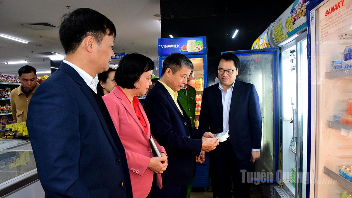 Đoàn kiểm tra liên ngành Trung ương về an toàn thực phẩm kiểm tra hàng hóa tại Siêu thị Tuyên Quang, phường Minh Xuân.