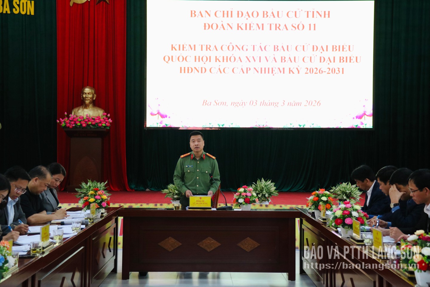 Đồng chí Vũ Thanh Tùng, Ủy viên Ban Thường vụ Tỉnh ủy, Giám đốc Công an tỉnh, thành viên Ban Chỉ đạo bầu cử tỉnh phát biểu tại chương trình kiểm tra
