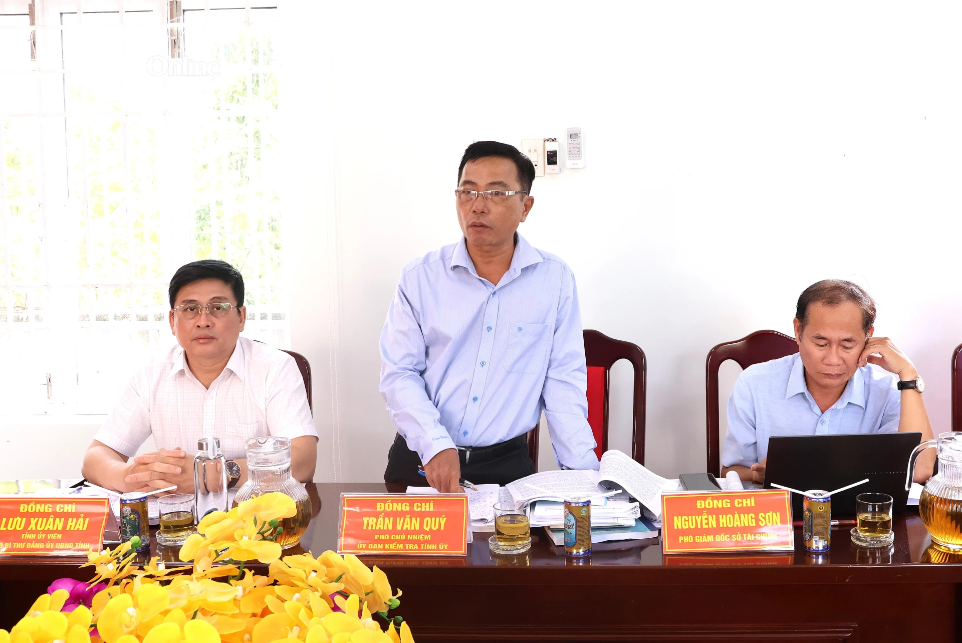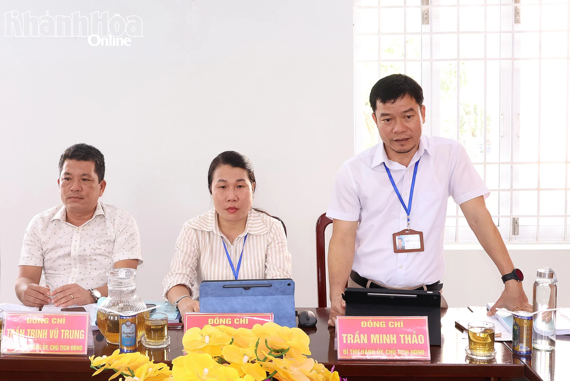 Ông Trần Minh Thảo - Bí thư Đảng ủy, Chủ tịch HĐND xã báo cáo tại buổi kiểm tra.