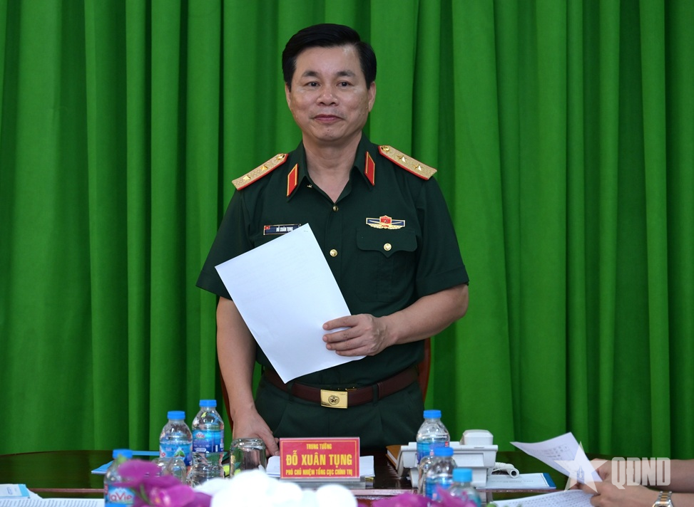 Trung tướng Đỗ Xuân Tụng, Phó chủ nhiệm Tổng cục Chính trị Quân đội nhân dân Việt Nam phát biểu chỉ đạo tại buổi kiểm tra.