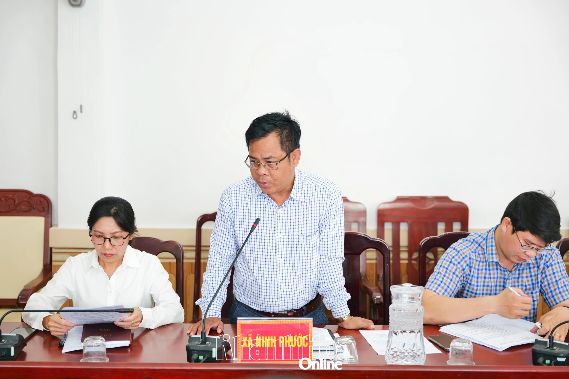 Lãnh đạo xã Ninh Phước báo cáo tại buổi kiểm tra.