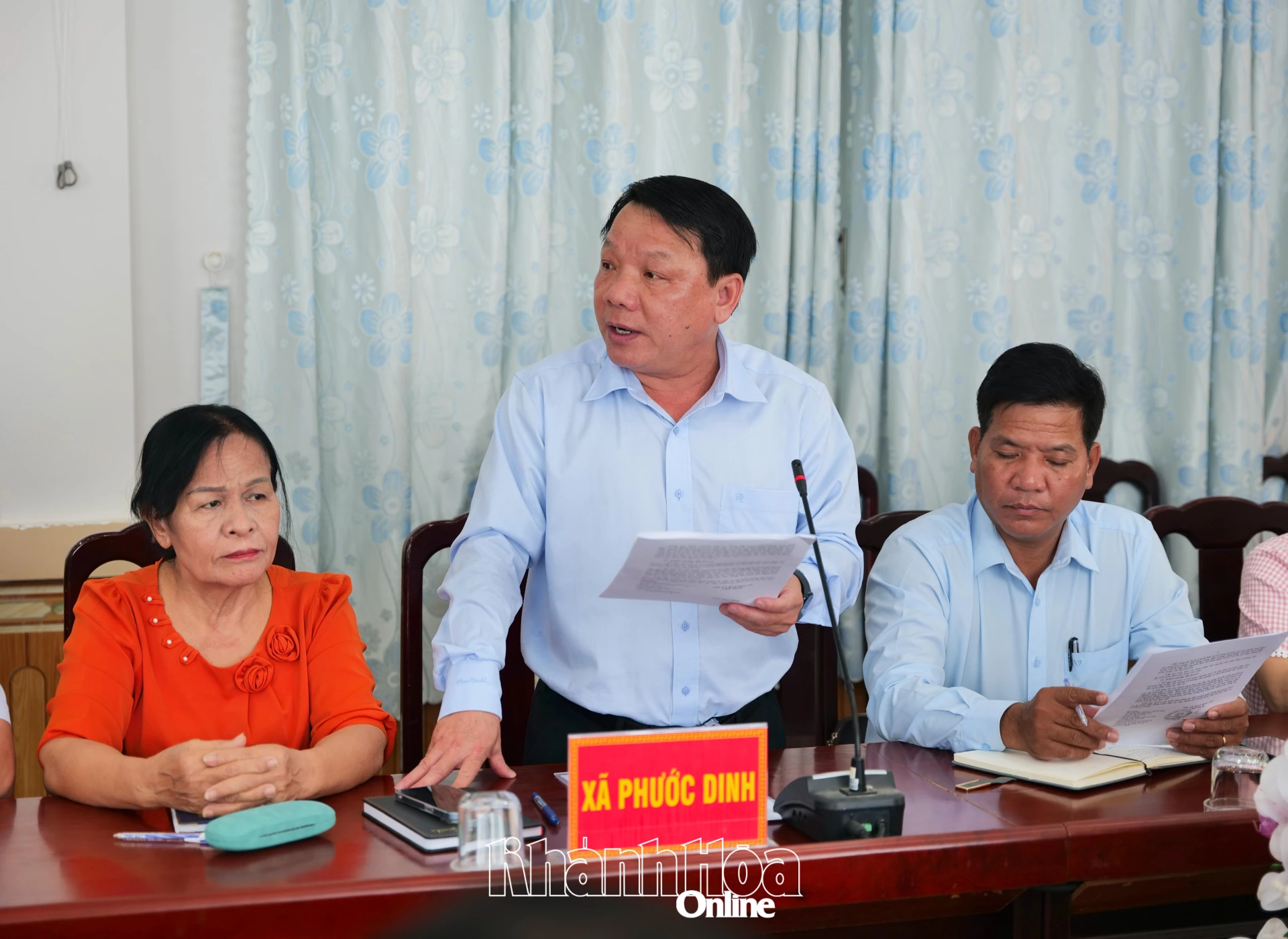 Lãnh đạo xã Phước Dinh báo cáo tại buổi kiểm tra.