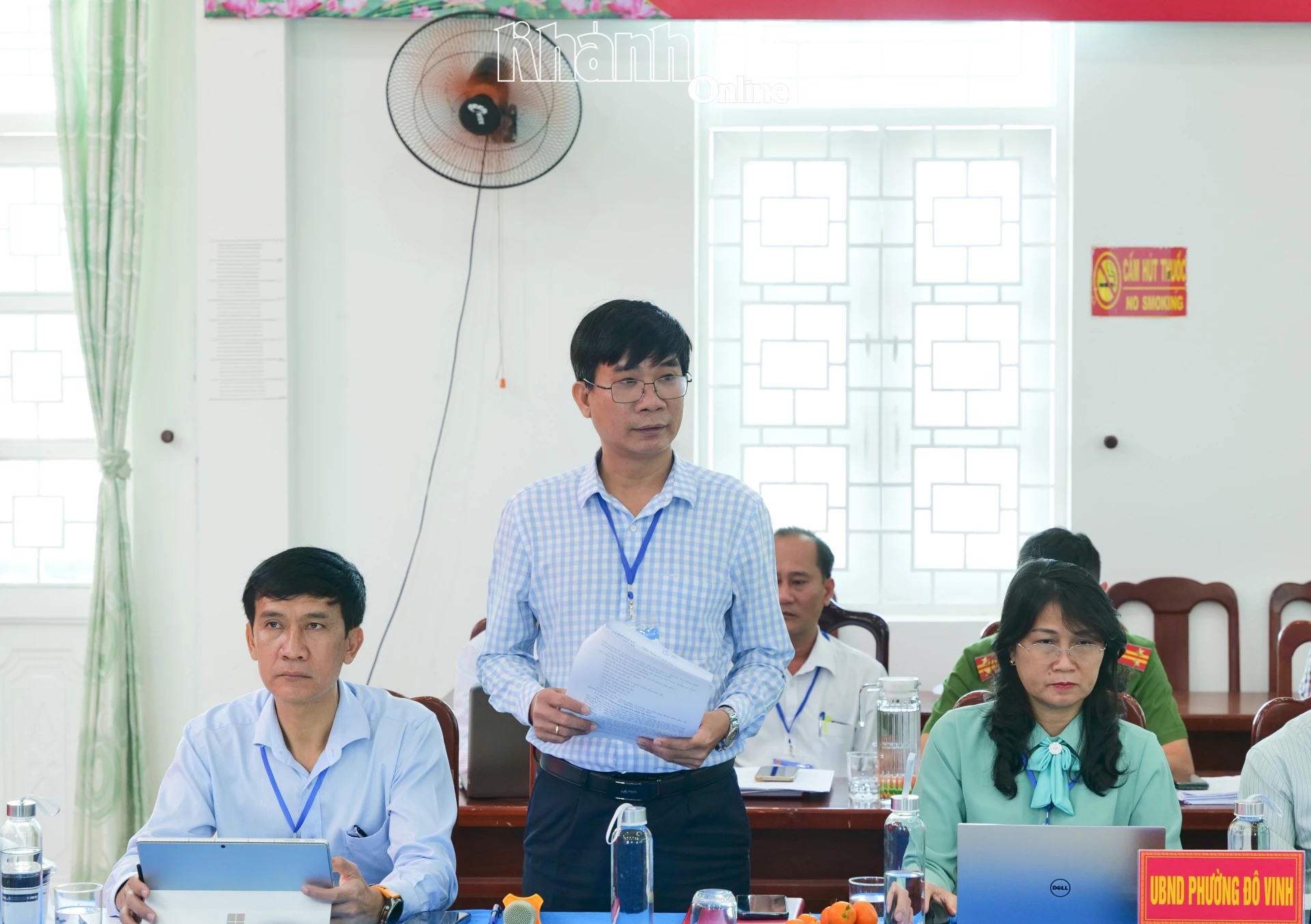 Lãnh đạo phường Đô Vinh báo cáo tại buổi làm việc.