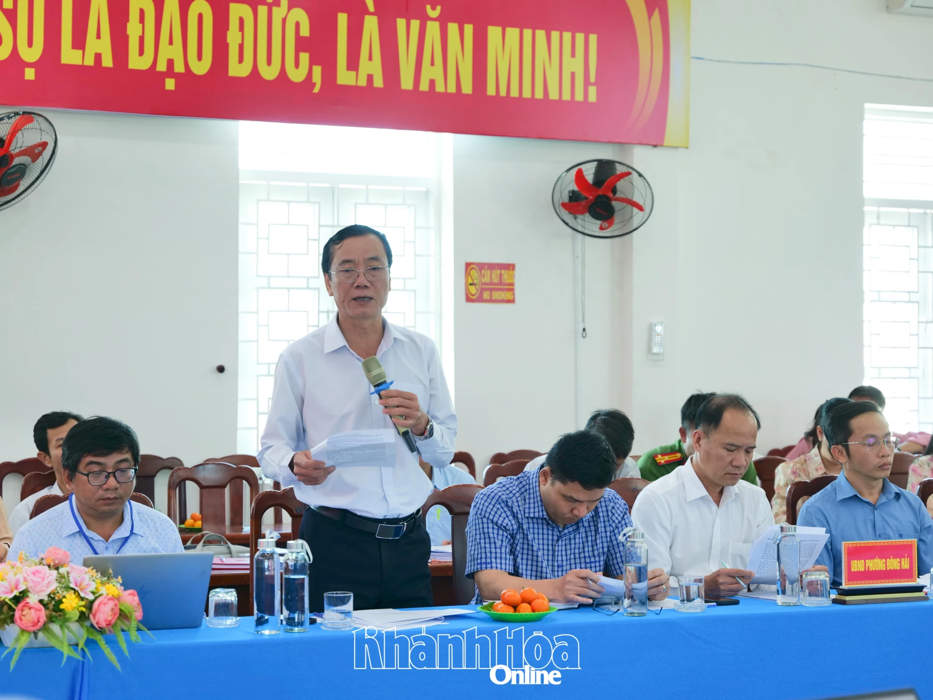 Lãnh đạo phường Đông Hải báo cáo tại buổi làm việc.