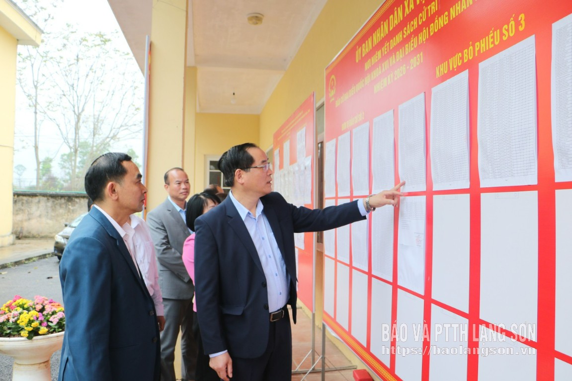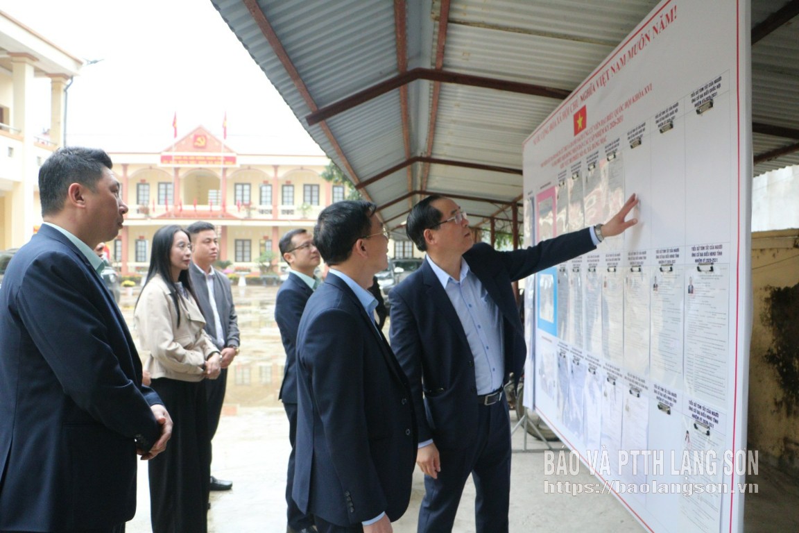 Đoàn kiểm tra xem xét thực tế tại địa điểm bỏ phiếu của xã Bằng Mạc