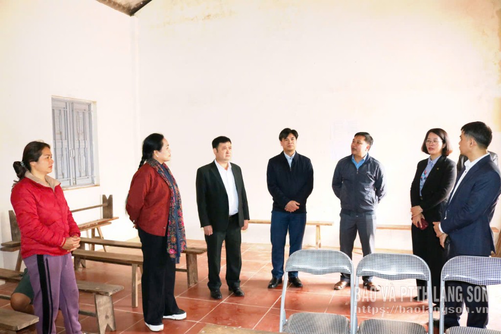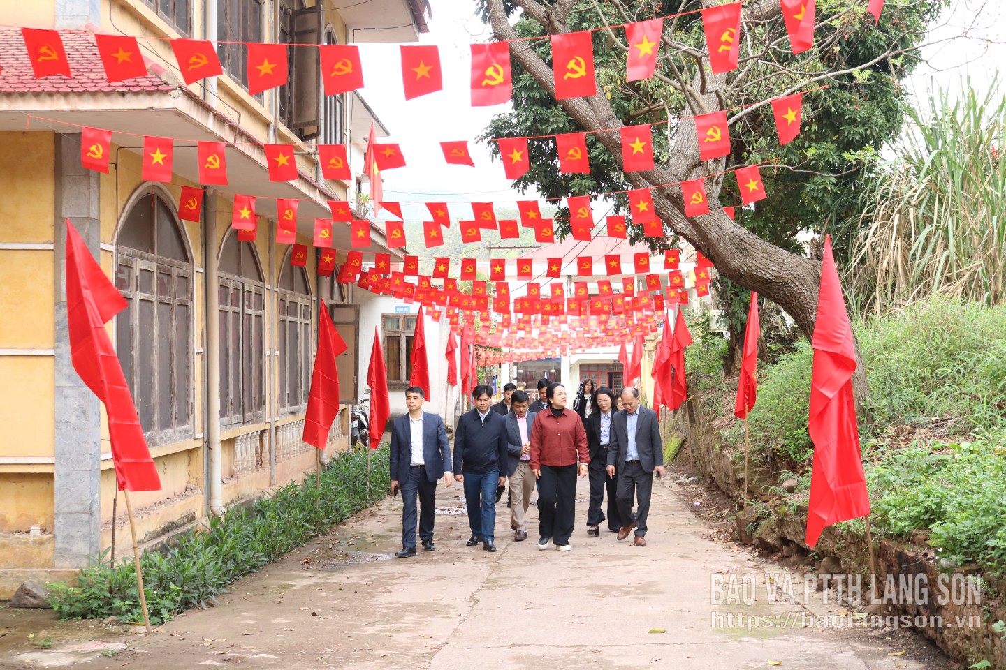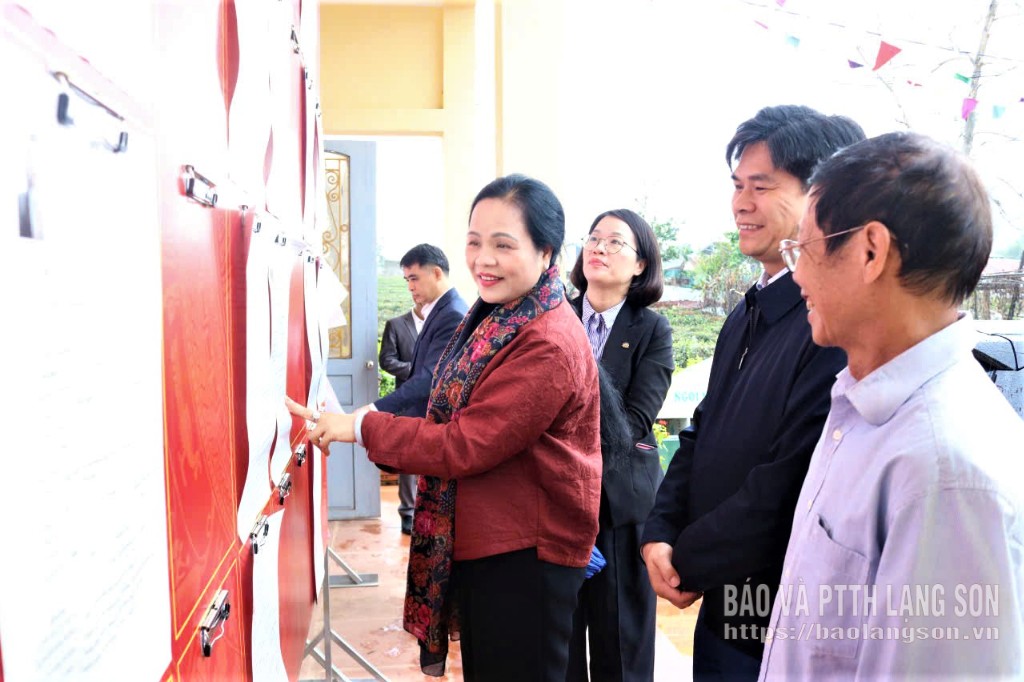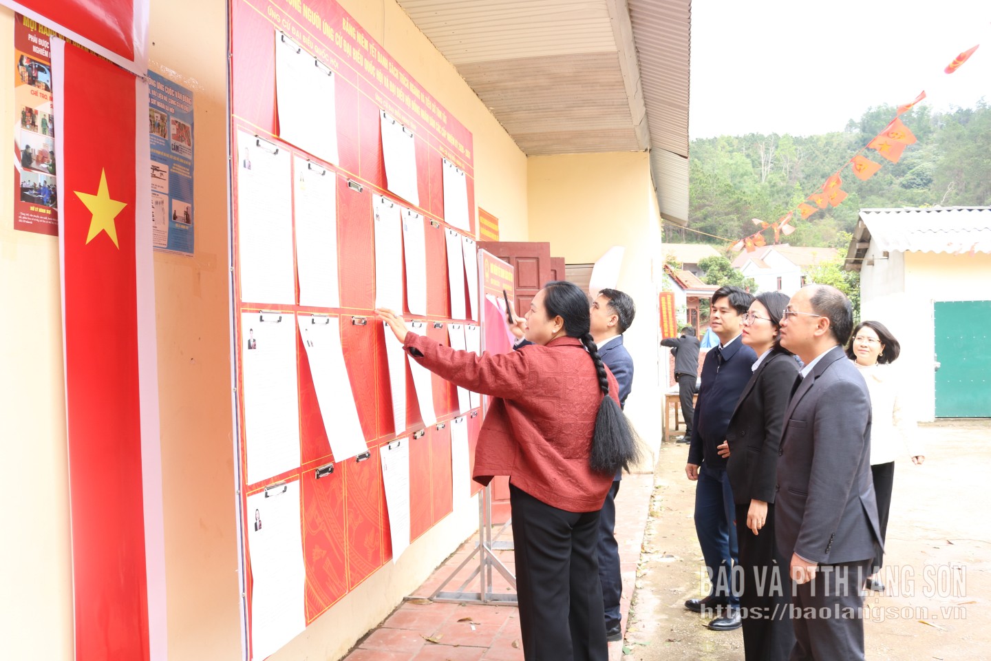 Đoàn kiểm tra kiểm tra việc niêm yết danh sách và tiểu sử tóm tắt các ứng cử viên Đại biểu Quốc hội khóa XVI và đại biểu HĐND các cấp nhiệm kỳ 2026-2031 tại nhà văn hóa thôn Khe Vuồng, xã Đình Lập
