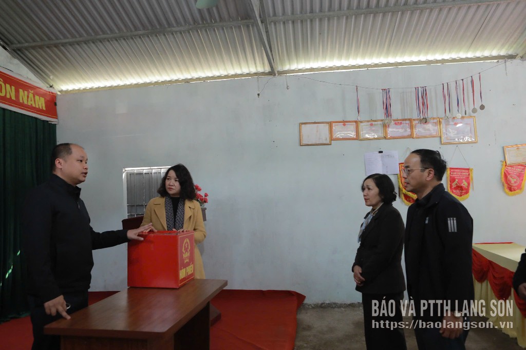 Đoàn kiểm tra thực tế khu vực bỏ phiếu tại nhà văn hóa thôn Đồng Phú, xã Khánh Khê