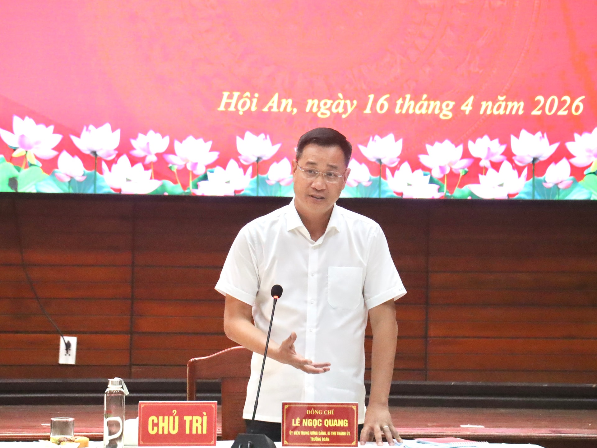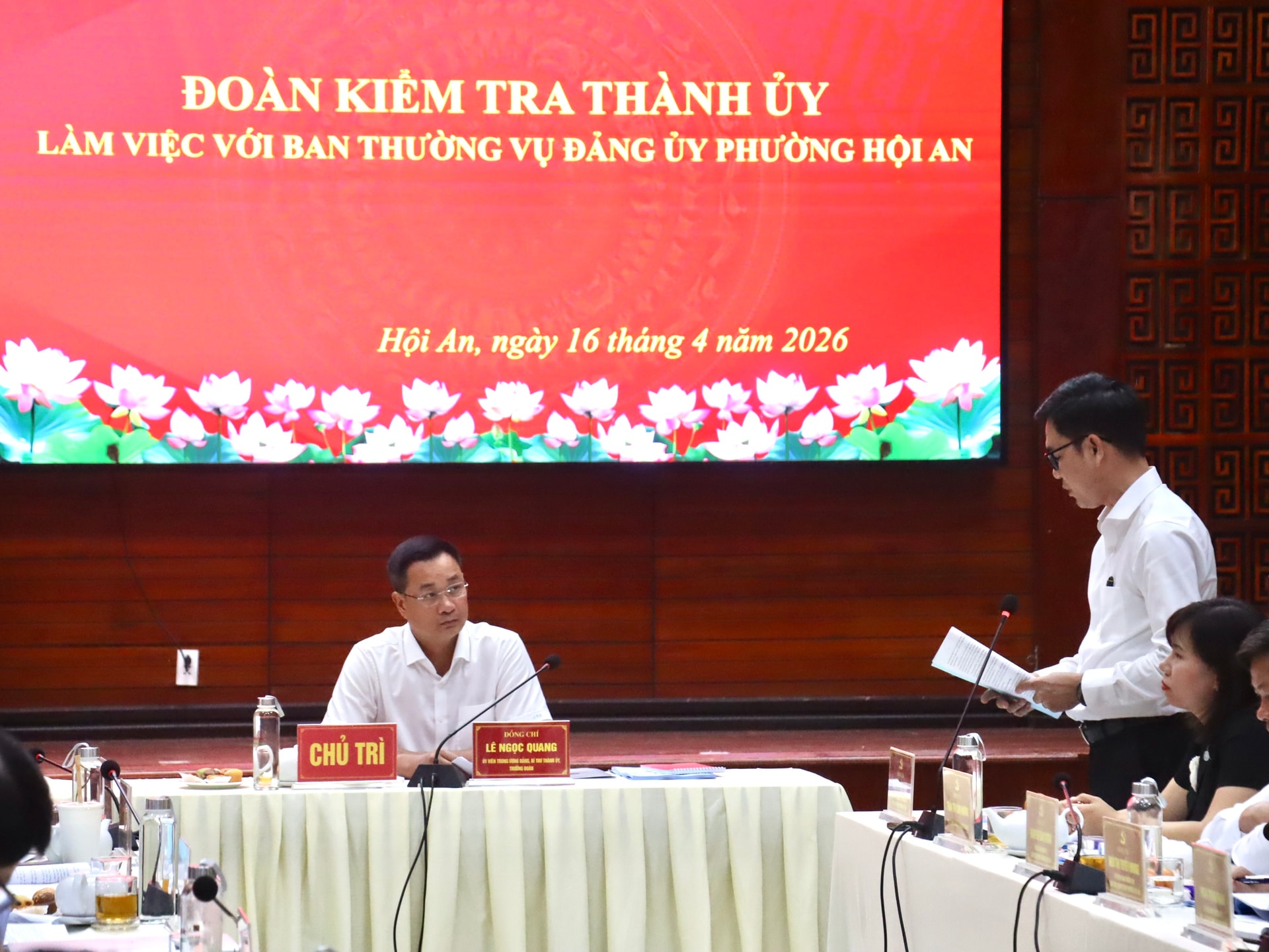 Phát biểu tại buổi kiểm tra, Bí thư Thành ủy Lê Ngọc Quang đánh giá cao các kết quả của Đảng ủy phường Hội An từ sau vận hành chính quyền 2 cấp. Đồng thời cho biết, sau khi sắp xếp đơn vị hành chính phát sinh nhiều vấn đề cần được nghiên cứu, điều chỉnh phù hợp với đặc thù của đô thị di sản.