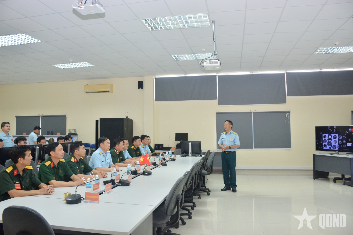 Đoàn kiểm tra nghe giới thiệu tại Trung tâm mô phỏng huấn luyện bay - đào tạo kỹ thuật hàng không.