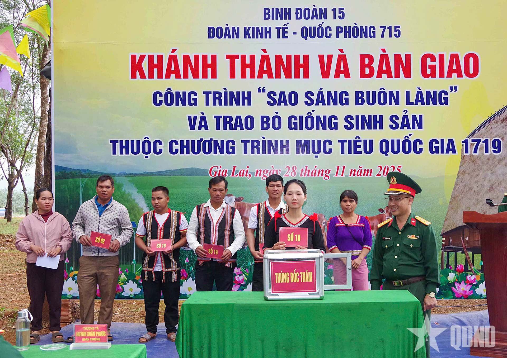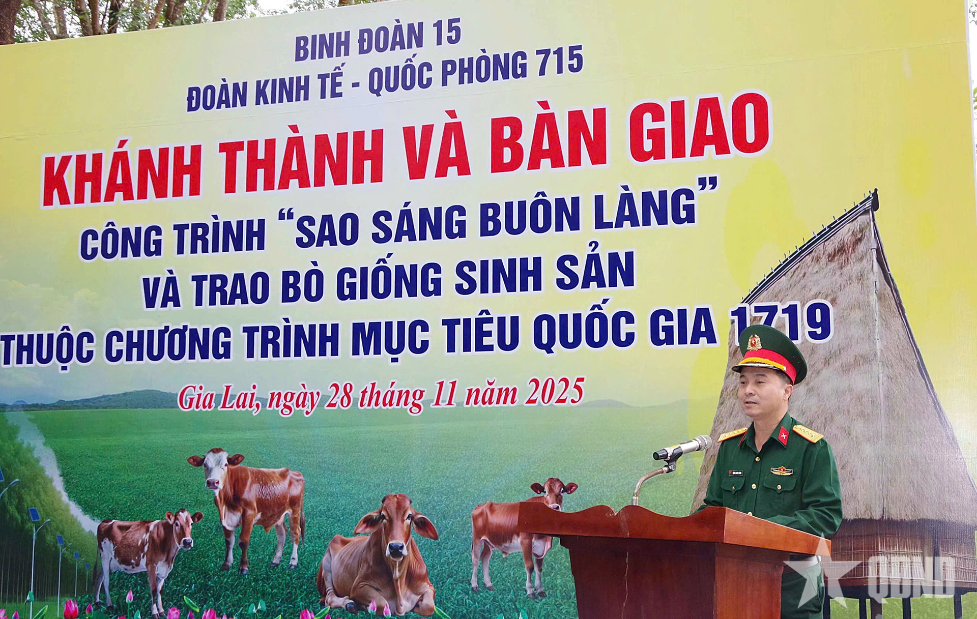 Phát biểu tại sự kiện, Đại tá Đặng Quang Dũng khẳng định, phong trào xây dựng công trình “Sao sáng buôn làng” và trao bò giống sinh sản, hỗ trợ sinh kế cho nhân dân là những hoạt động an sinh xã hội nổi bật của Binh đoàn 15. Qua đó góp phần phát triển kinh tế, văn hóa, xã hội và củng cố, tăng cường quốc phòng, an ninh trên địa bàn.