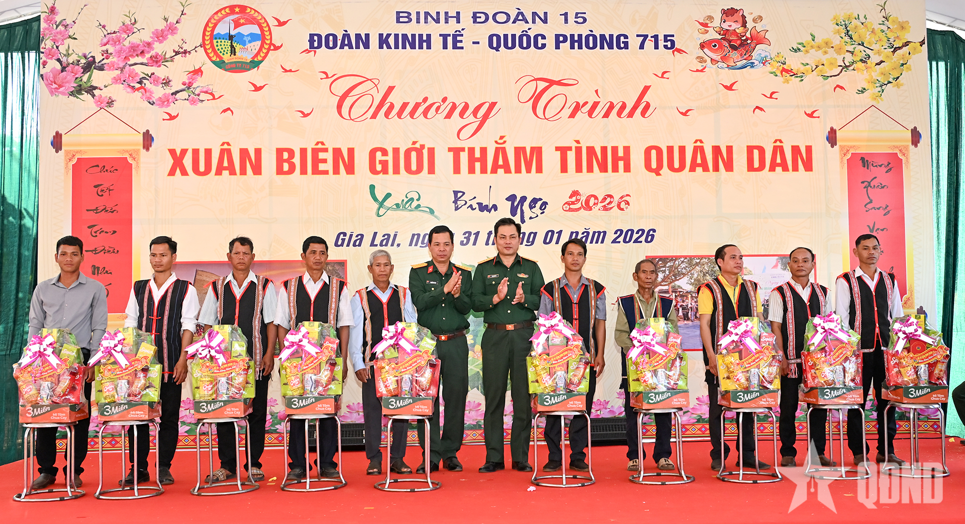 Chương trình “Xuân biên giới thắm tình quân dân” được các đơn vị trong toàn Binh đoàn 15 tổ chức tại các thôn, làng đơn vị đứng chân. Trong đợt 1 của chương trình, Binh đoàn 15 dự kiến trao tặng trên 30.000 suất quà tặng các đối tượng, với tổng trị giá hơn 23 tỷ đồng; tặng 100 tấn phân bón vi sinh cho Quân chủng Hải quân trong chương trình “Xanh hóa Trường Sa”. Riêng Đoàn Kinh tế – Quốc phòng 715 trao tặng hơn 1.000 suất quà, trị giá hơn 1 tỷ đồng.