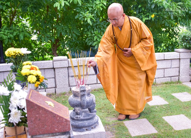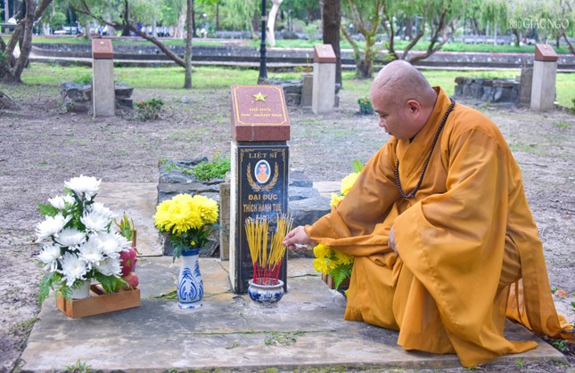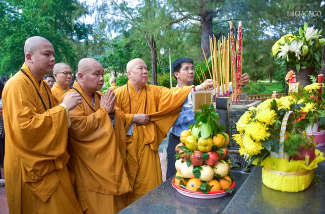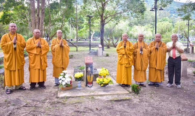 Hòa thượng Thích Thiện Duyên cùng chư tôn đức thắp hương tưởng niệm tại mộ phần Đại đức Thích Hành Tuệ - vị tu sĩ Phật giáo bị giam cầm, hy sinh tại Côn Đảo năm 1973