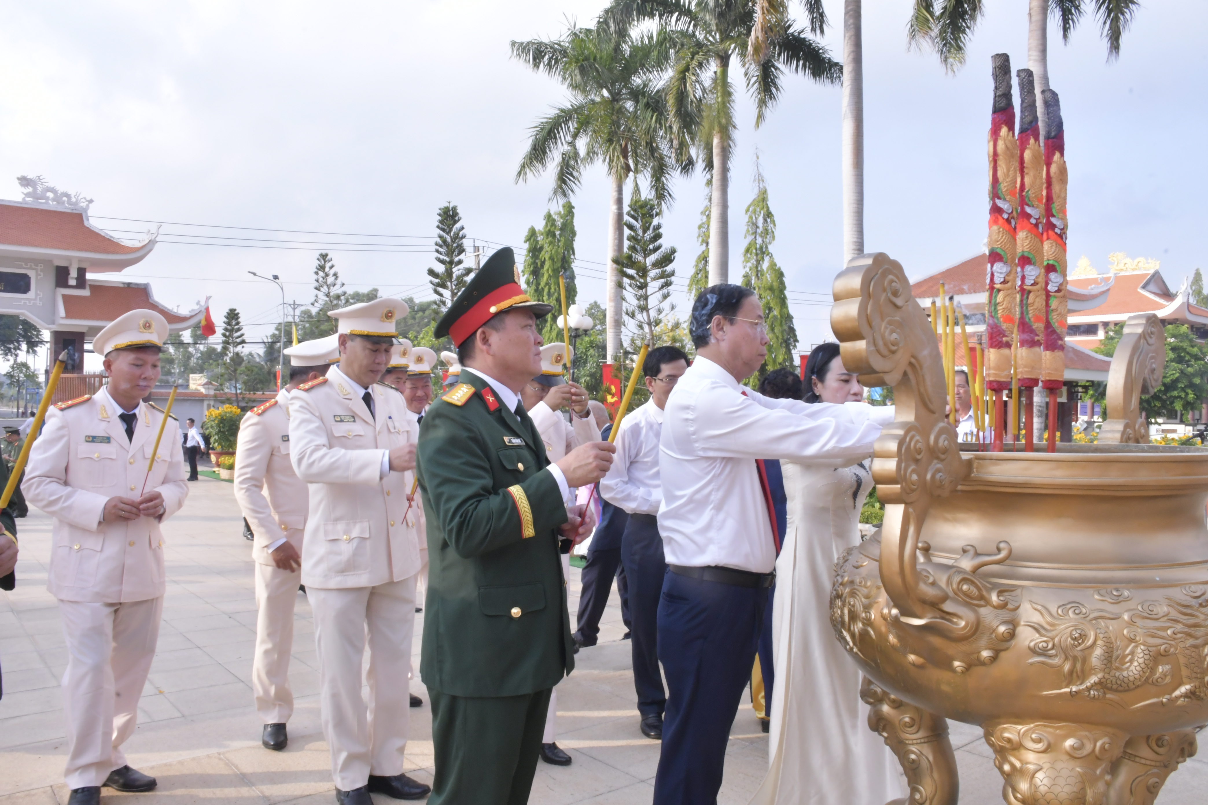 Sau nghi thức dâng hoa, dâng hương, các đại biểu thắp hương tại phần mộ các Anh hùng liệt sĩ, thể hiện lòng tri ân và tưởng nhớ.