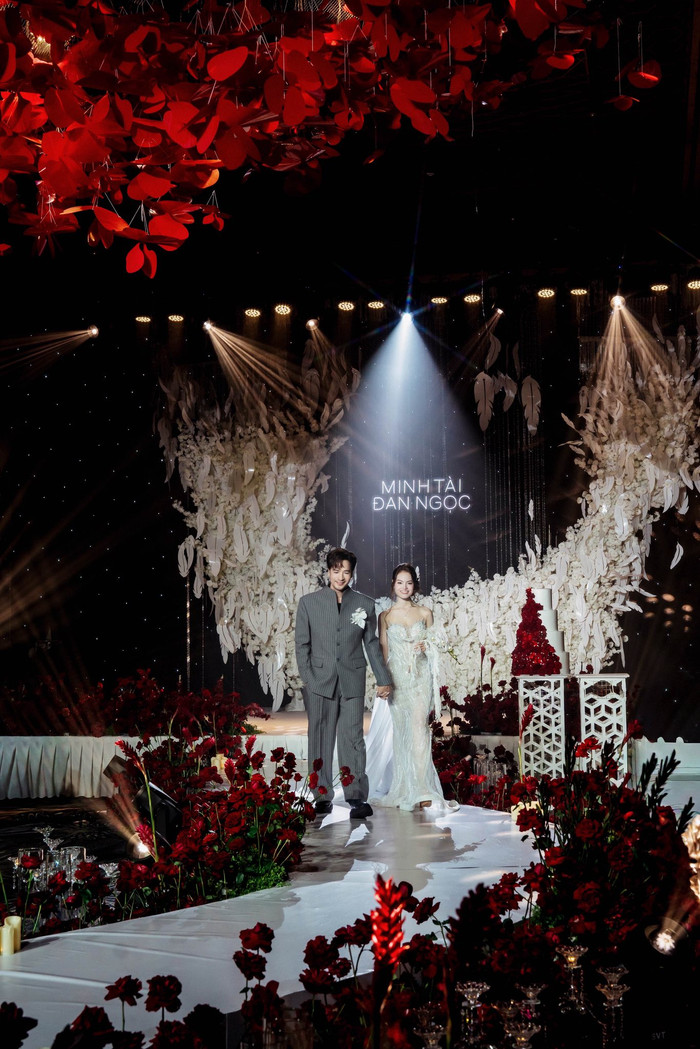 Trong lễ cưới, cô dâu và chú rể xuất hiện tình tứ trên sân khấu. Dù chênh lệch tới 16 tuổi, Đoàn Minh Tài và Sunny Đan Ngọc được khen ngợi vẫn rất đẹp đôi. Sunny Đan Ngọc lộng lẫy trong váy cưới, còn chú rể xuất hiện bảnh bao, lịch lãm.