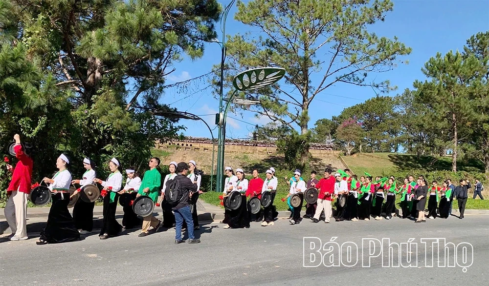 Đoàn Phú Thọ tham gia trình diễn cồng chiêng đường phố.