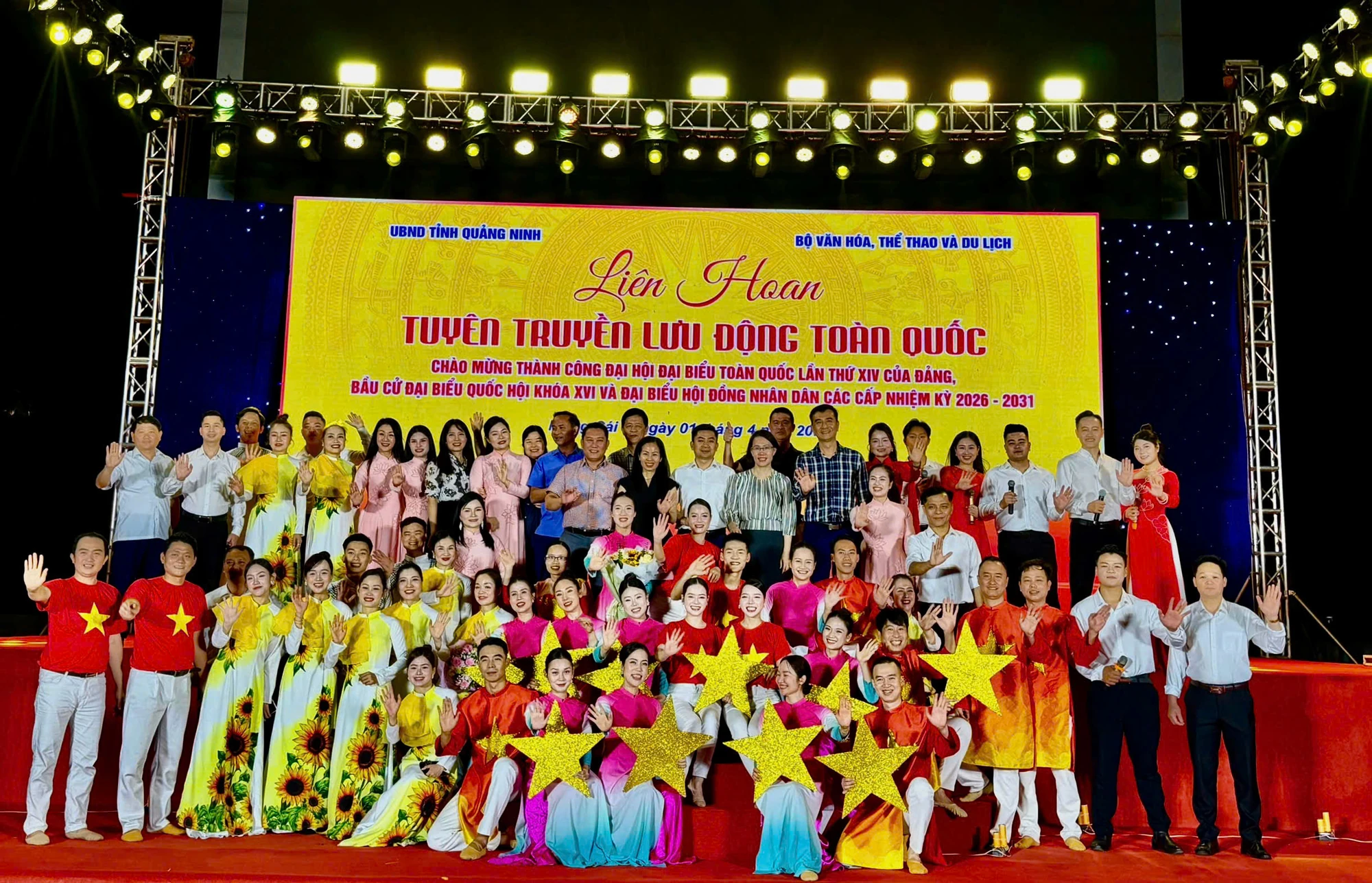Các đoàn tham gia Liên hoan Tuyên truyền lưu động toàn quốc năm 2026 nhận giải tại Lễ bế mạc diễn ra tối 3/4 tại Quảng trường 30/10 (phường Hạ Long, tỉnh Quảng Ninh).