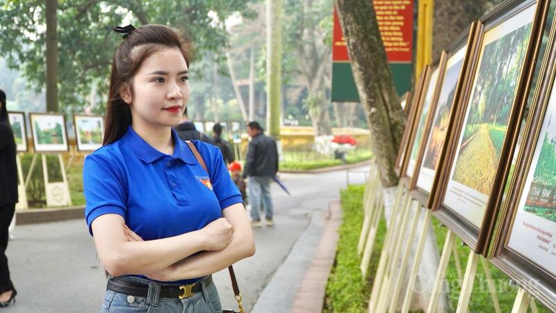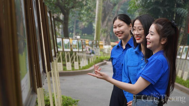 Đoàn viên thanh niên Báo Công Thương tham quan Triển lãm “Khoảnh khắc đẹp trong Khu di tích Chủ tịch Hồ Chí Minh" tại Phủ Chủ tịch. Ảnh: Minh Trang